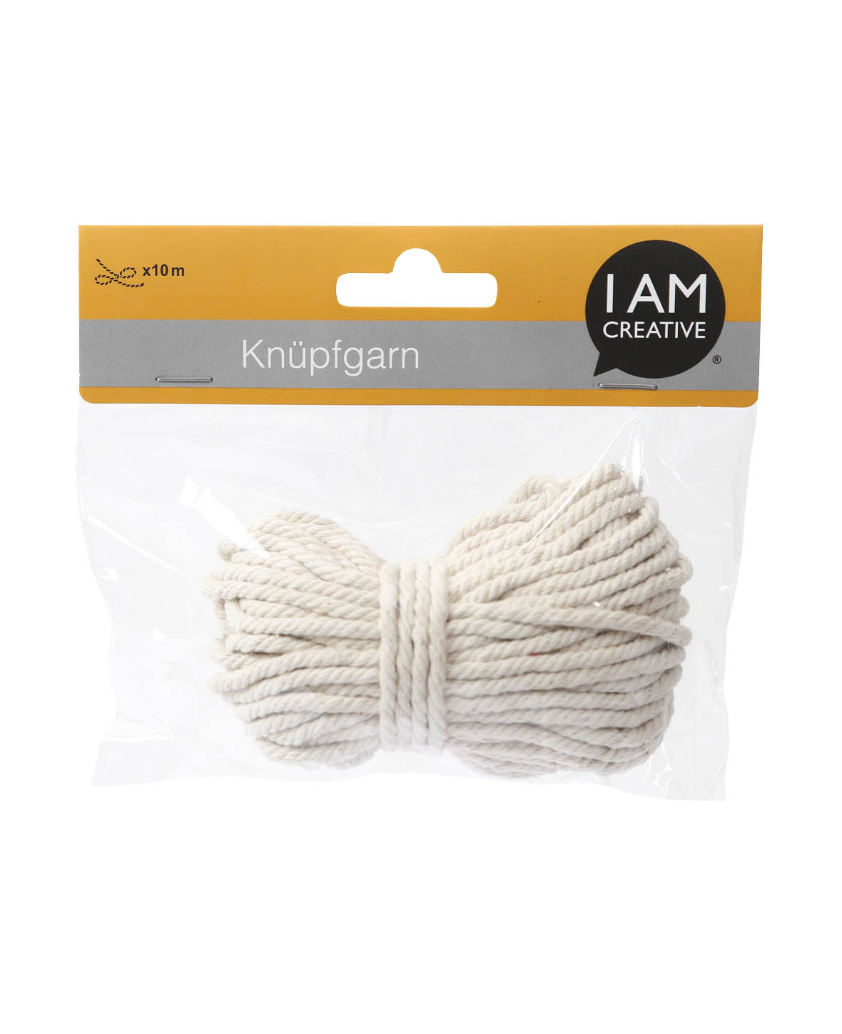 Das I AM CREATIVE Knüpfgarn ist ein wahres Multitalent, wenn es um die kreative Gestaltung im Bereich Dekoration oder Geschenkverpackungen geht. Dieses natürliche breite Garn in der Farbe Ecru kann für verschiedene DIY Projekte wie zum Weben, Knüpfen, Häkeln, Stricken aber auch zum Basteln und zum Geschenke verpacken eingesetzt werden..