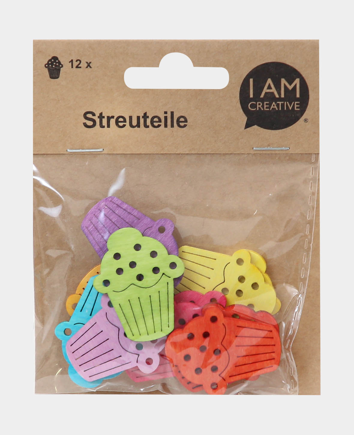 (12er Set) 4cm Streuteile Muffins für DIY Bastel Tisch Deko - Bunt