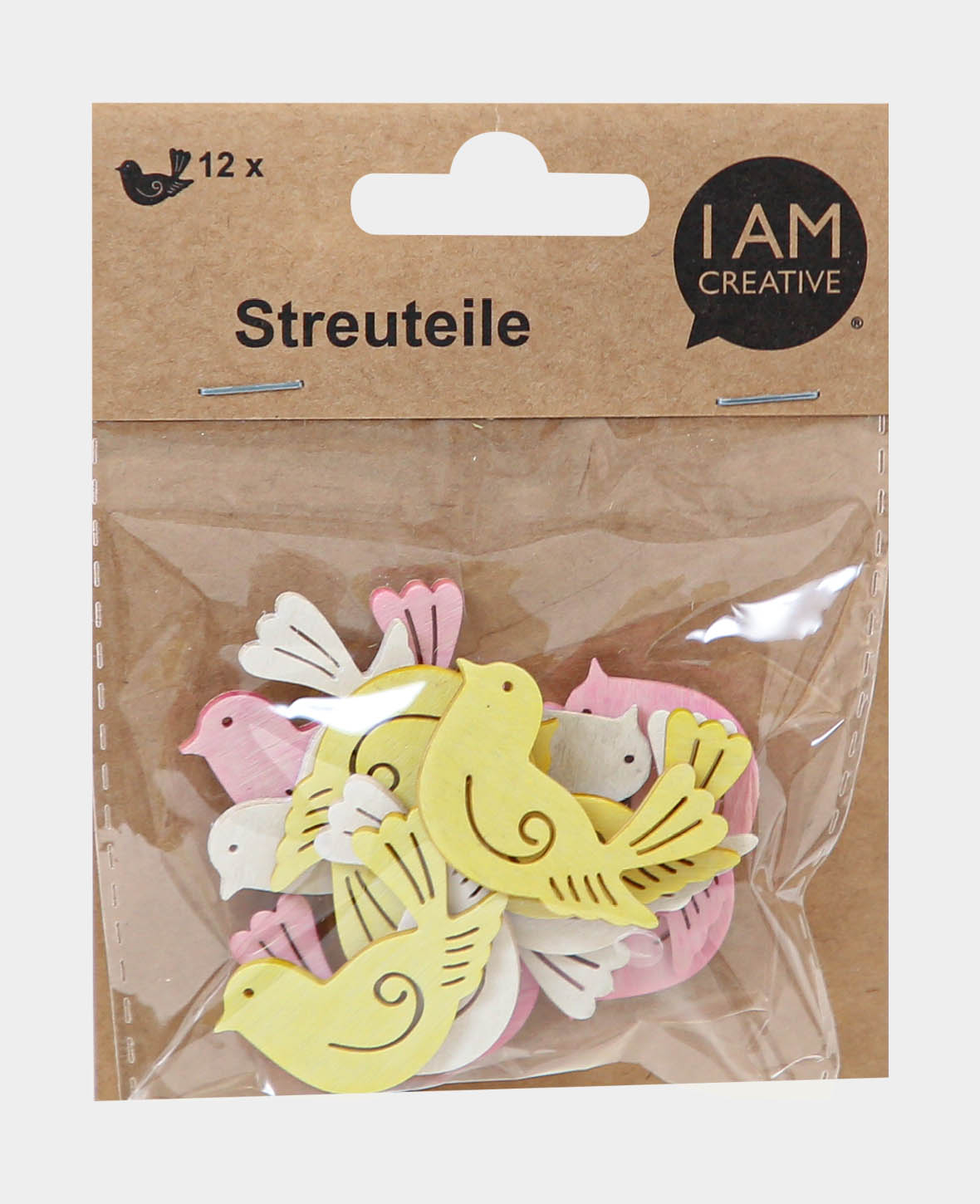(12er Set) 4cm Streuteile Vogel für DIY Bastel Tisch Deko - Bunt