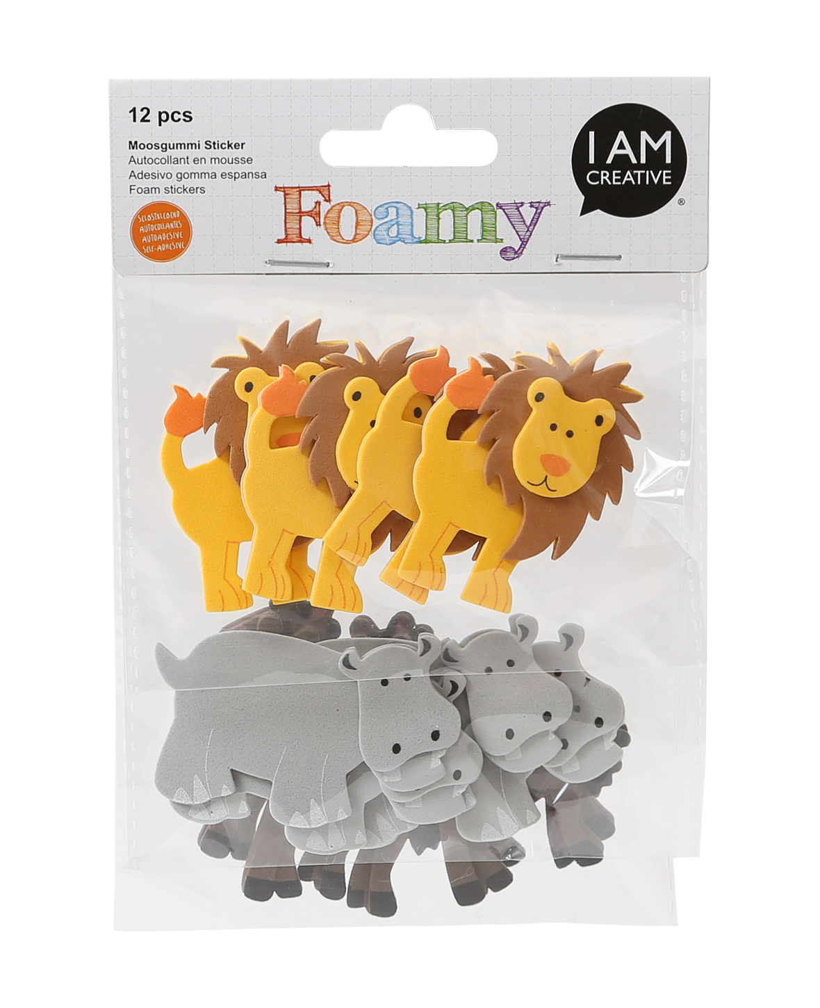 (12er Set) Foamy Moosgummi Sticker DIY Bastel Tier Aufkleber - Wild Animals II