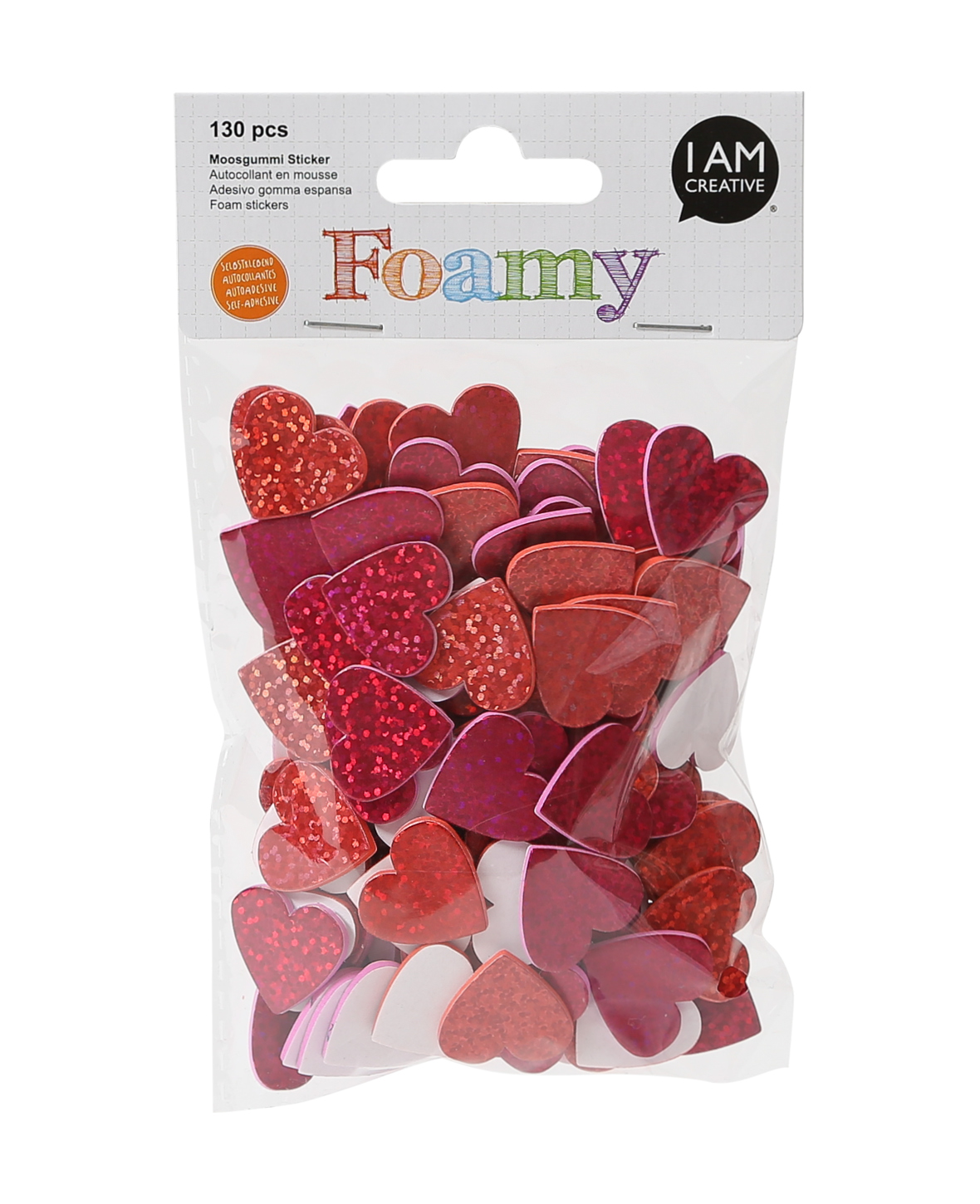 (130er Set) Foamy Moosgummi Sticker DIY Bastel Glitterfolie Aufkleber - Herzen