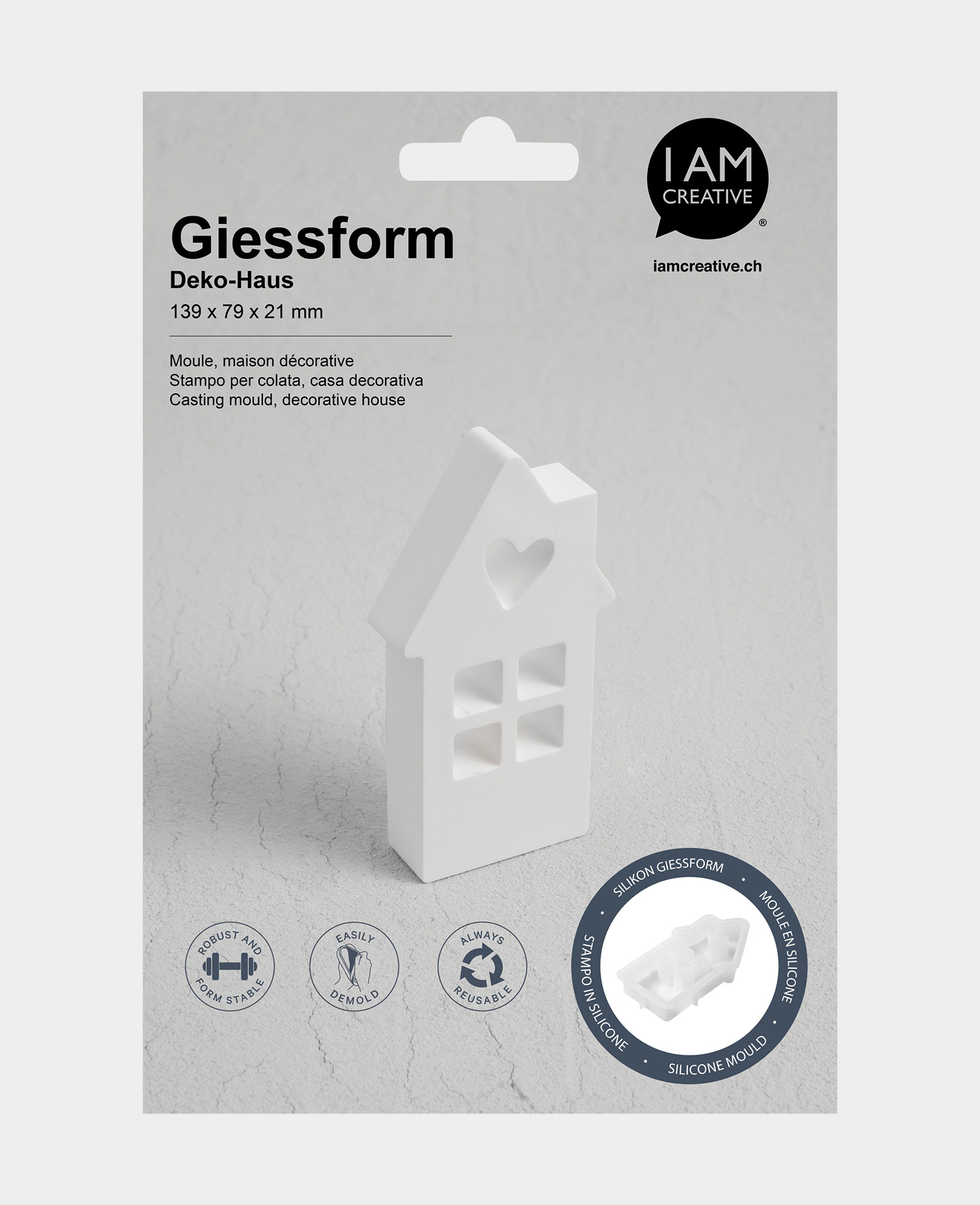 Die formstabile und elastische Eigenschaft der Silikonform ermöglicht genaueste Abformungen mit verschiedenen giessbaren Materialien wie Edelweiss-Giesspulver, Feinbeton, Giesseife, Giessharz, Wachs, Kreide oder Gips. Dein Werk lässt sich nach dem Trocknen leicht aus der Form entfernen und kann nach deinen Wünschen bemalt, beschriftet, graviert und dekoriert werden.