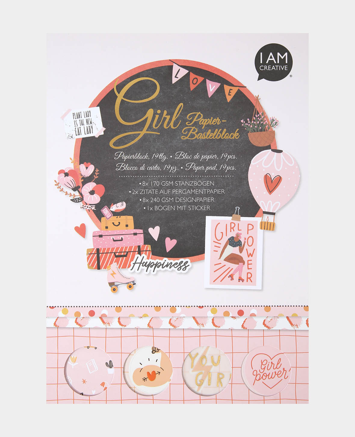 (19-tlg. Set) Papier Bastelblock DIY Designpapier inkl. Sticker - Girl