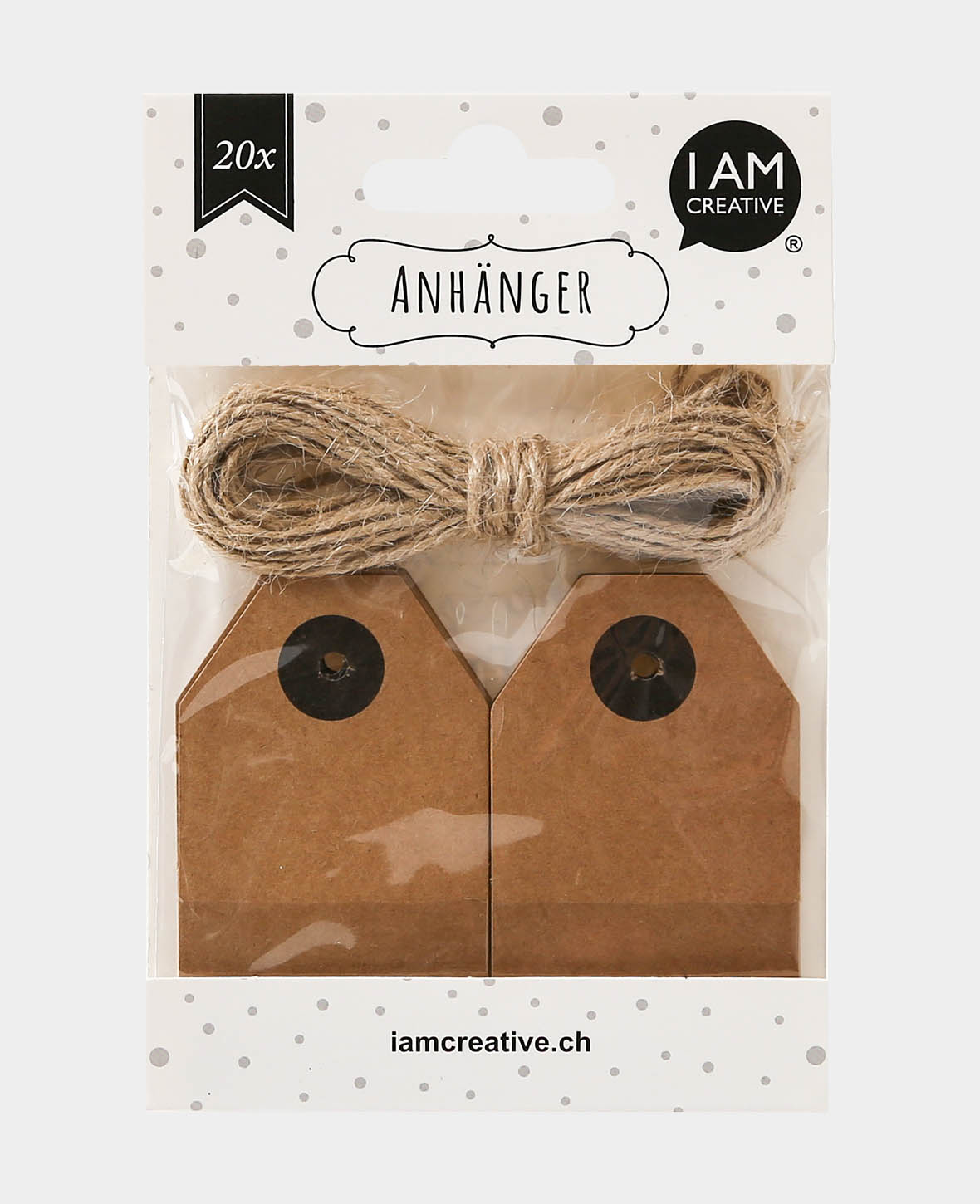 (20er Set) Geschenkanhänger für Geschenke Bastel Deko Anhänger - Natur Eckig