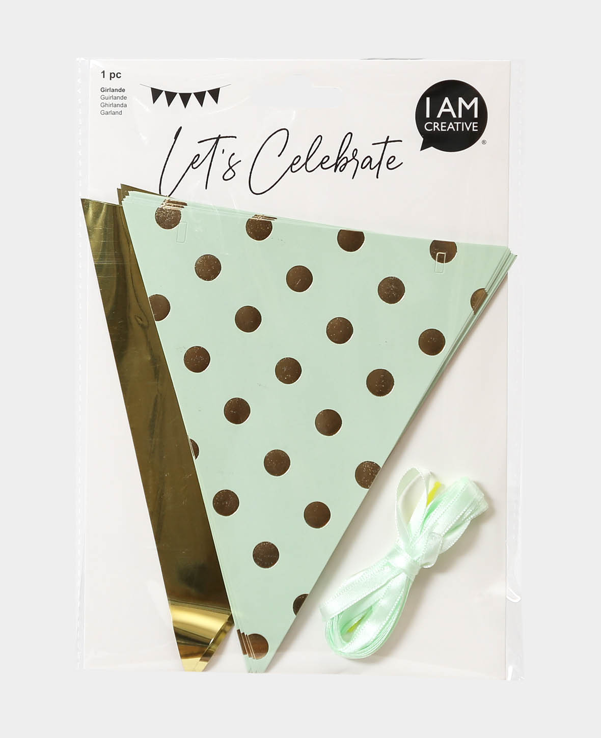 Diese stilvolle Wimpelgirlande von I AM CREATIVE verleiht deinen Festen und Feiern eine besonders festliche Note. Die harmonische Farbkombination aus Mint und Gold sorgt für elegante Akzente und passt perfekt zu verschiedensten Anlässen – ob Geburtstag, Hochzeit oder Gartenparty.