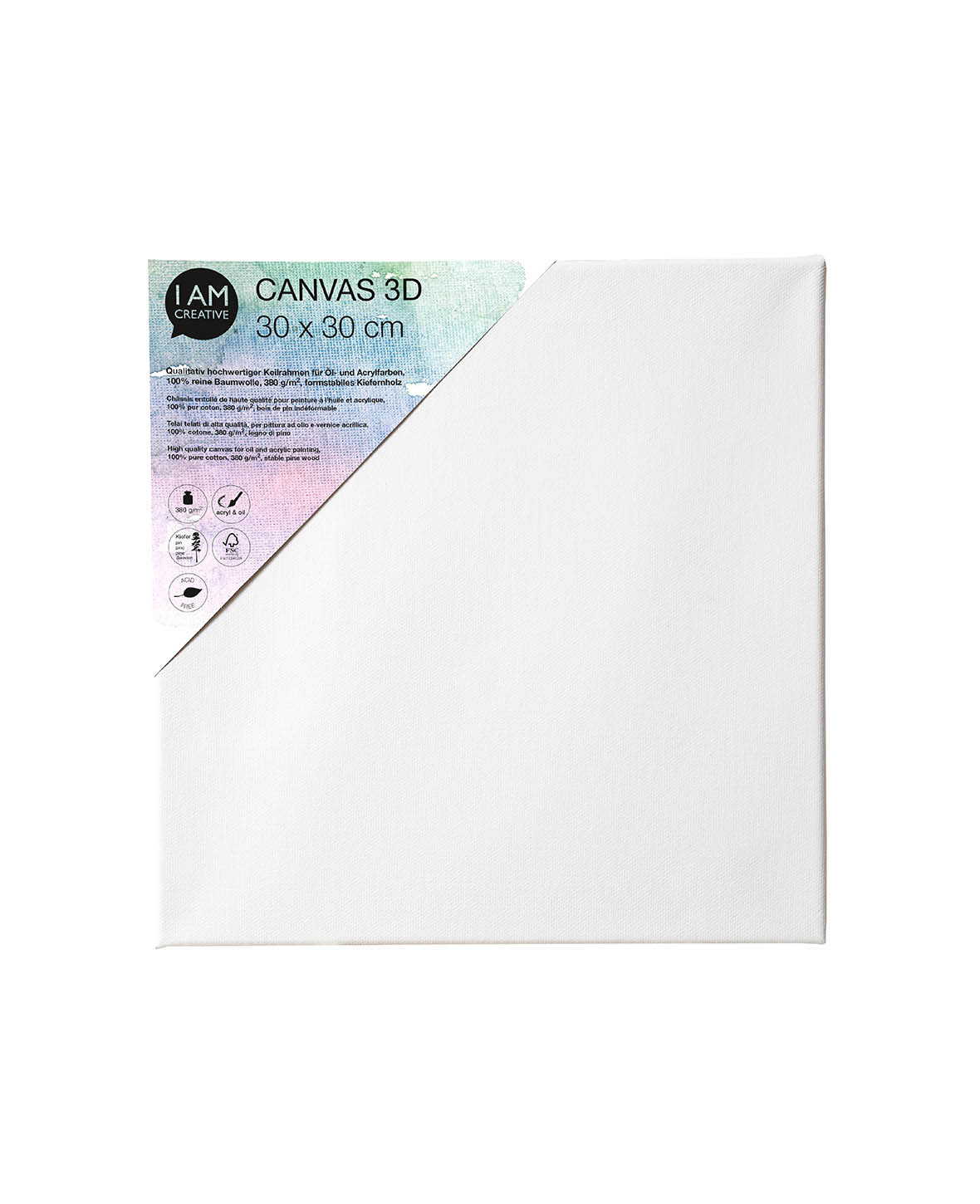 Unser I AM CREATIVE Holz Keilrahmen aus Baumwolle ist ideal für alle DIY Projekte, die du dir vorgenommen hast. Das strenge Verfahren zur Herstellung garantiert dir grösste Stabilität, indem es keinen Raum für Spannungsaufbau lässt und somit ein Verziehen der Leisten verhindert. Die 100% reine Baumwolle macht den Keilrahmen hochwertig und perfekt für Öl- und Acrylfarben geeignet.