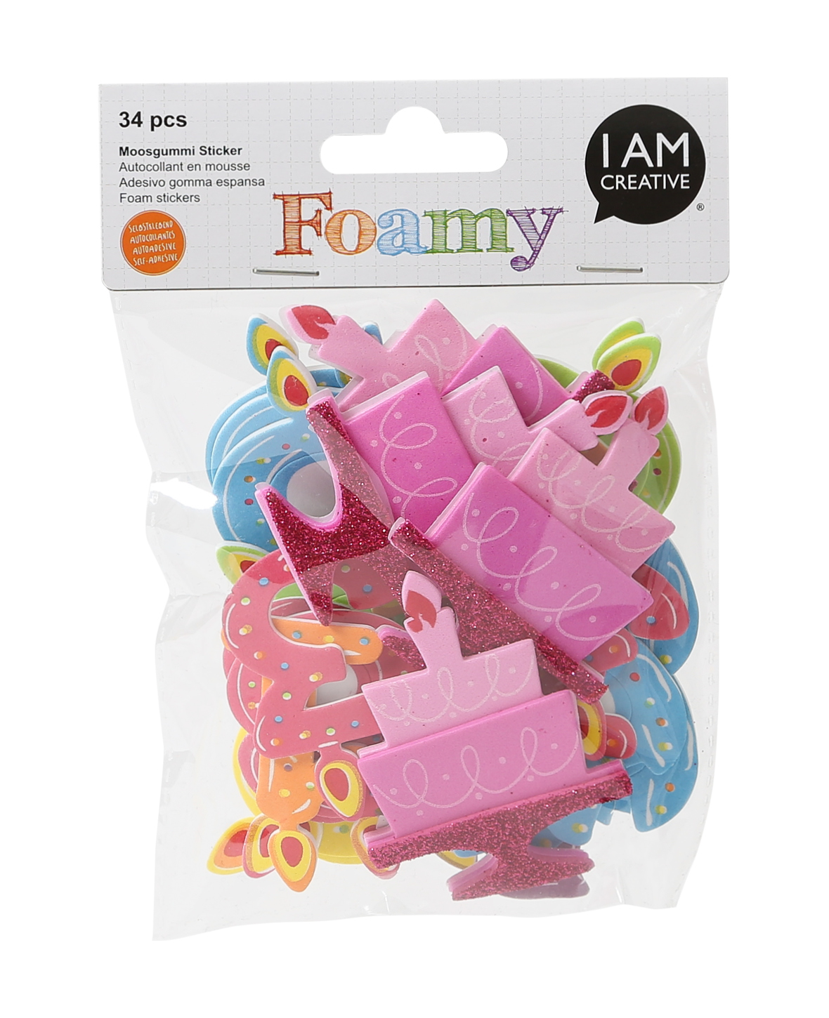 (34er Set) Foamy Moosgummi Sticker DIY Bastel Party Aufkleber - Geburtstag
