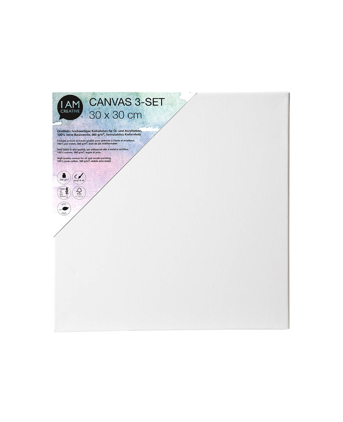 Auf die Leisten wurde eine 100% reine Baumwolle mit einer Gewebequalität von 380g/m2 aufgespannt. Sie sind der ideale Untergrund für Öl- und Acrylfarben und lassen deine kreativen Werke in strahlenden Farben und beeindruckender Qualität zur Geltung kommen. Mit dem 3er Set hast du genug Material, um gleich mehrere Projekte zu starten.