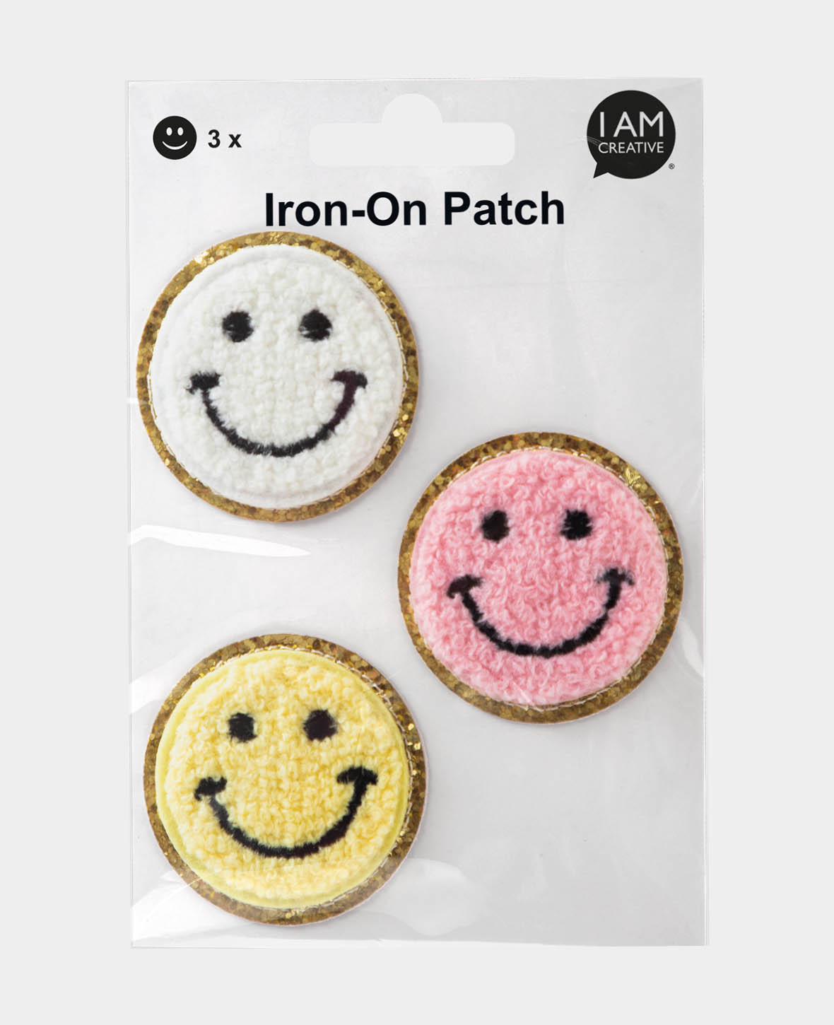 (3er Set) Ø5cm Smiley Aufnäher Bügel Patch DIY Textilaufnäher - Bunt