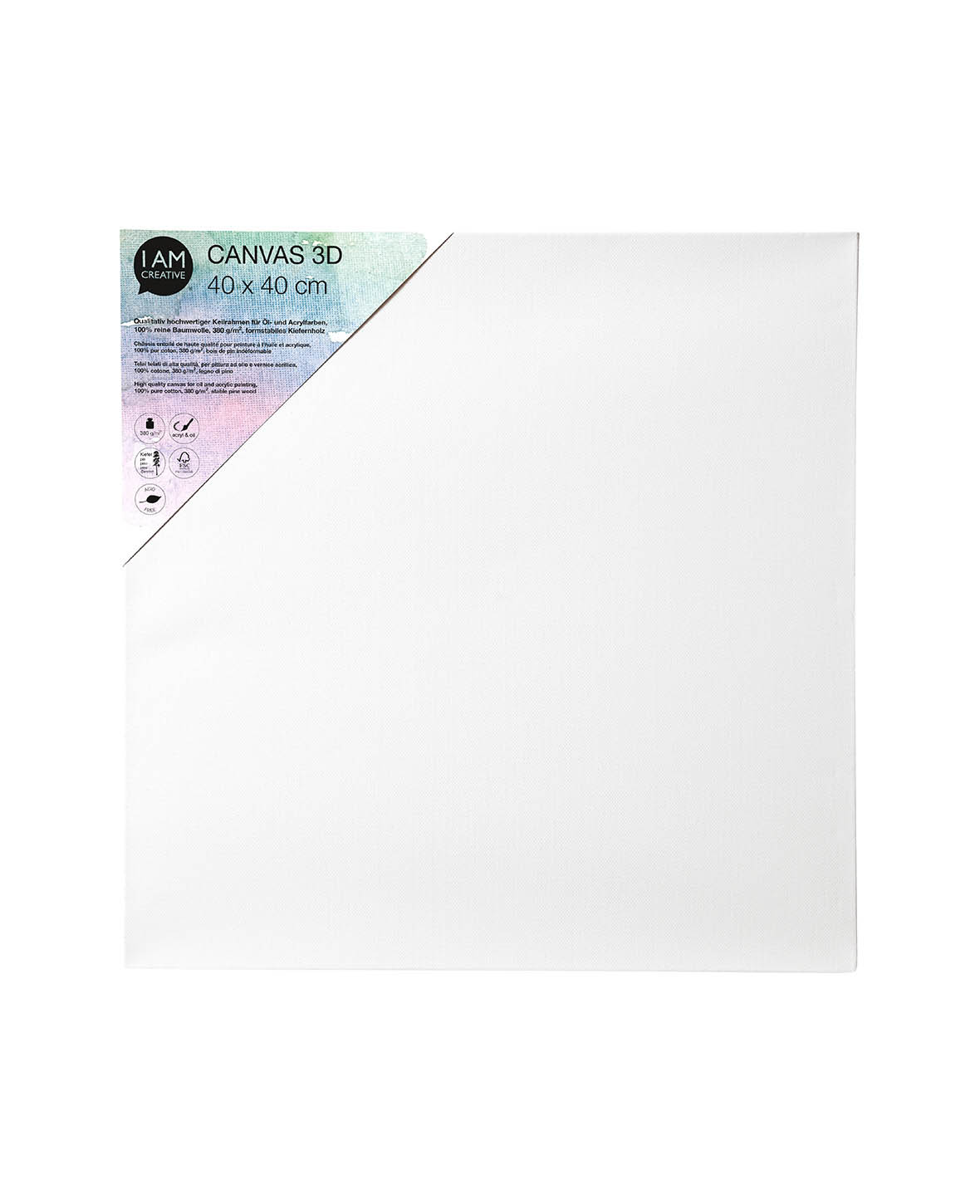 Unser I AM CREATIVE Holz Keilrahmen aus Baumwolle ist ideal für alle DIY Projekte, die du dir vorgenommen hast. Das strenge Verfahren zur Herstellung garantiert dir grösste Stabilität, indem es keinen Raum für Spannungsaufbau lässt und somit ein Verziehen der Leisten verhindert. Die 100% reine Baumwolle macht den Keilrahmen hochwertig und perfekt für Öl- und Acrylfarben geeignet.