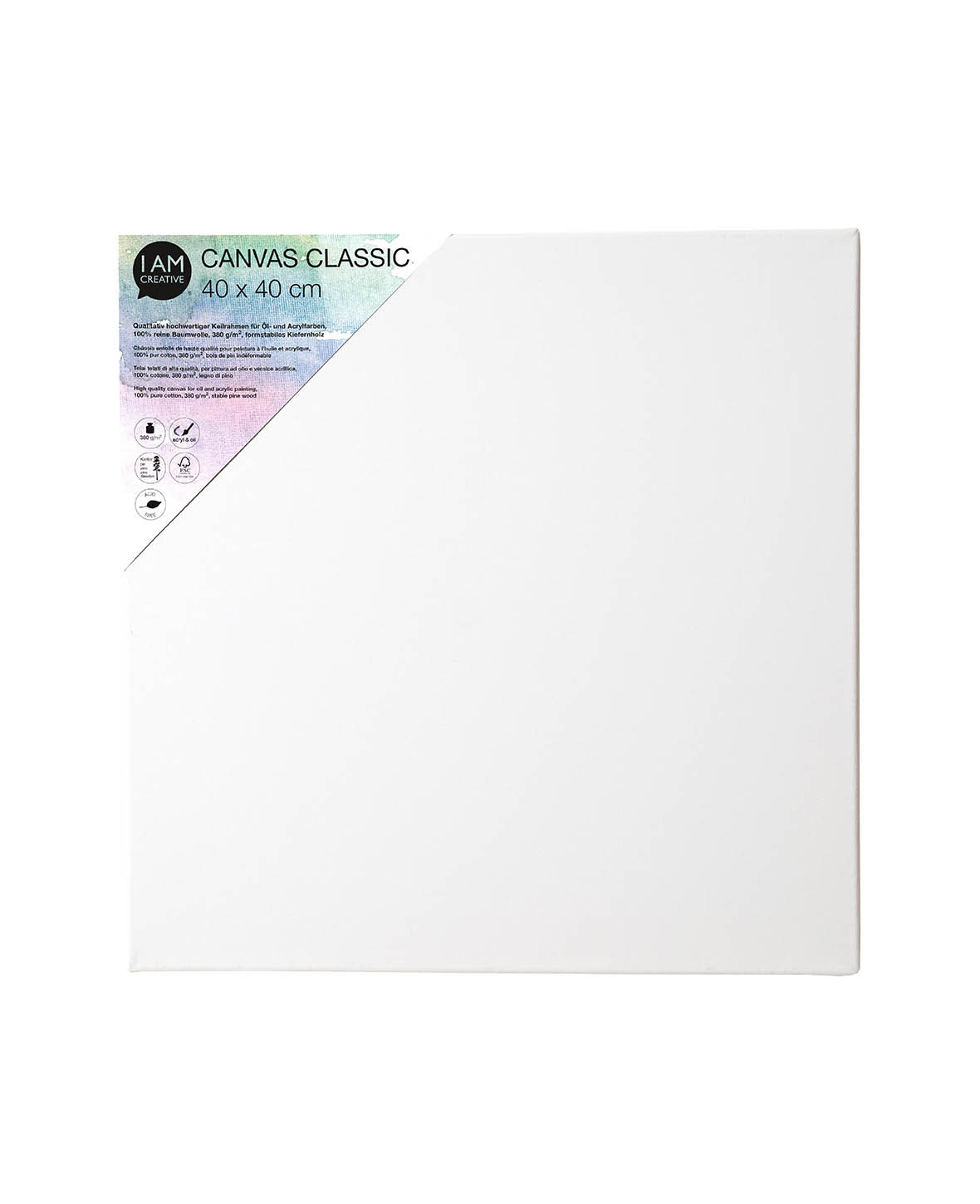Unser I AM CREATIVE Keilrahmen ist sorgfältig verarbeitet und bietet die perfekte Grundlage für deine Kunst. Ob Öl- oder Acrylfarben - auf dem hochwertigen, weissen Baumwollbezug kommen deine Farben optimal zur Geltung. Der Keilrahmen besteht aus formstabilem Kiefernholz. Durch das aufwändige Verfahren der mehrfachen Verleimung ist er höchst verzugsfrei.