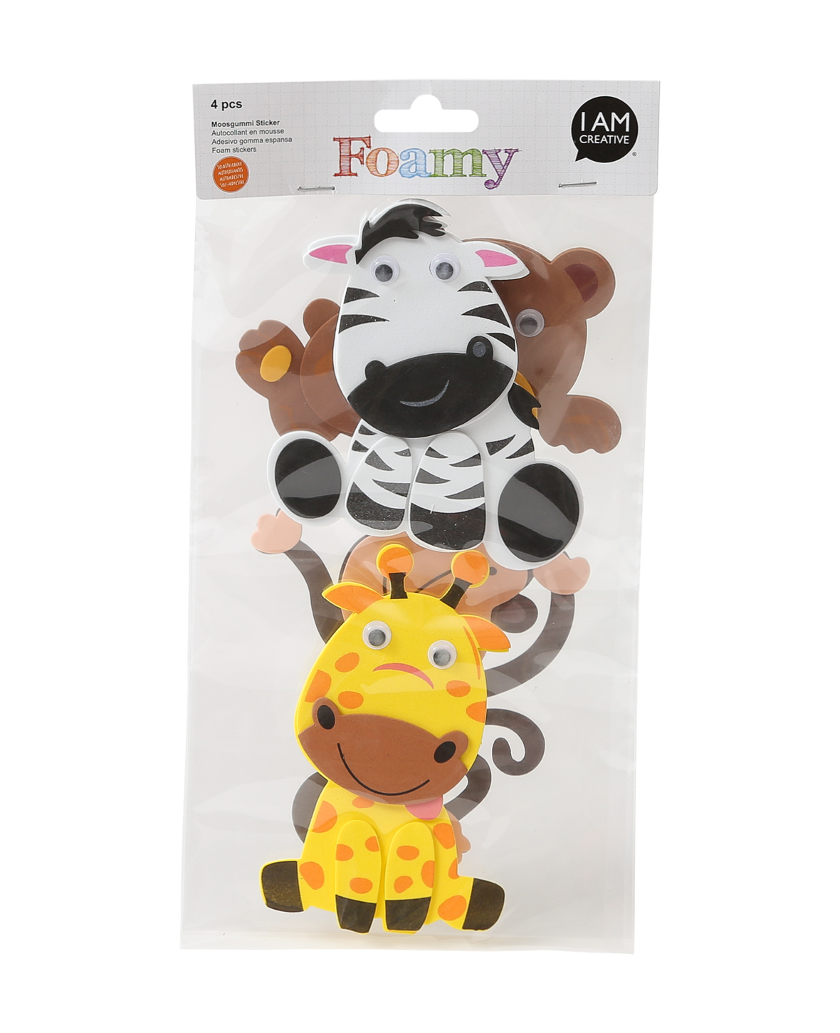 (4er Set) Foamy 3D Moosgummi Sticker DIY Bastel Tiere Aufkleber - Wild Animals I