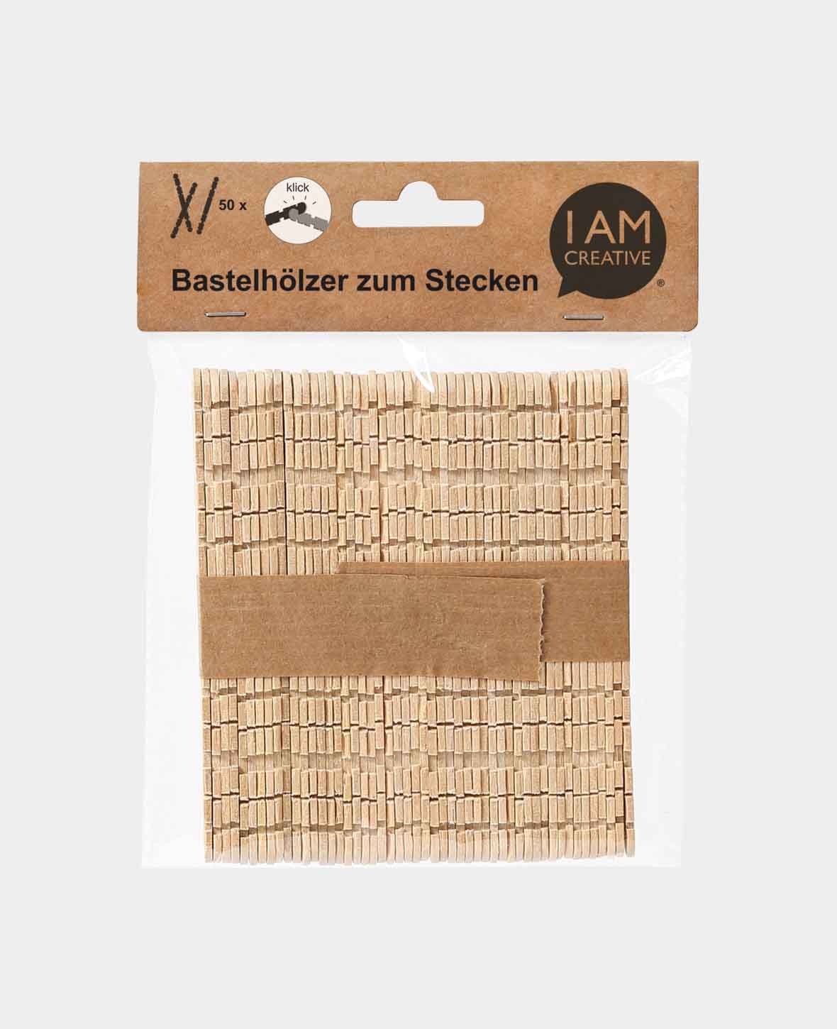 Mit unseren Bastelhölzern von I AM CREATIVE kannst du deiner Fantasie freien Lauf lassen und die unterschiedlichsten kreativen Bastelprojekte umsetzen. Ob Du Figuren, Gebilde, Bilderrahmen oder Spielhäuser erstellen möchtest - mit den gezahnten Bastelhölzern ist das kinderleicht. Der Clou: Sie lassen sich durch ihre Kerbungen einfach zusammenstecken, so wird Basteln zu einem spielerisch-leichten und unkomplizierten Erlebnis.