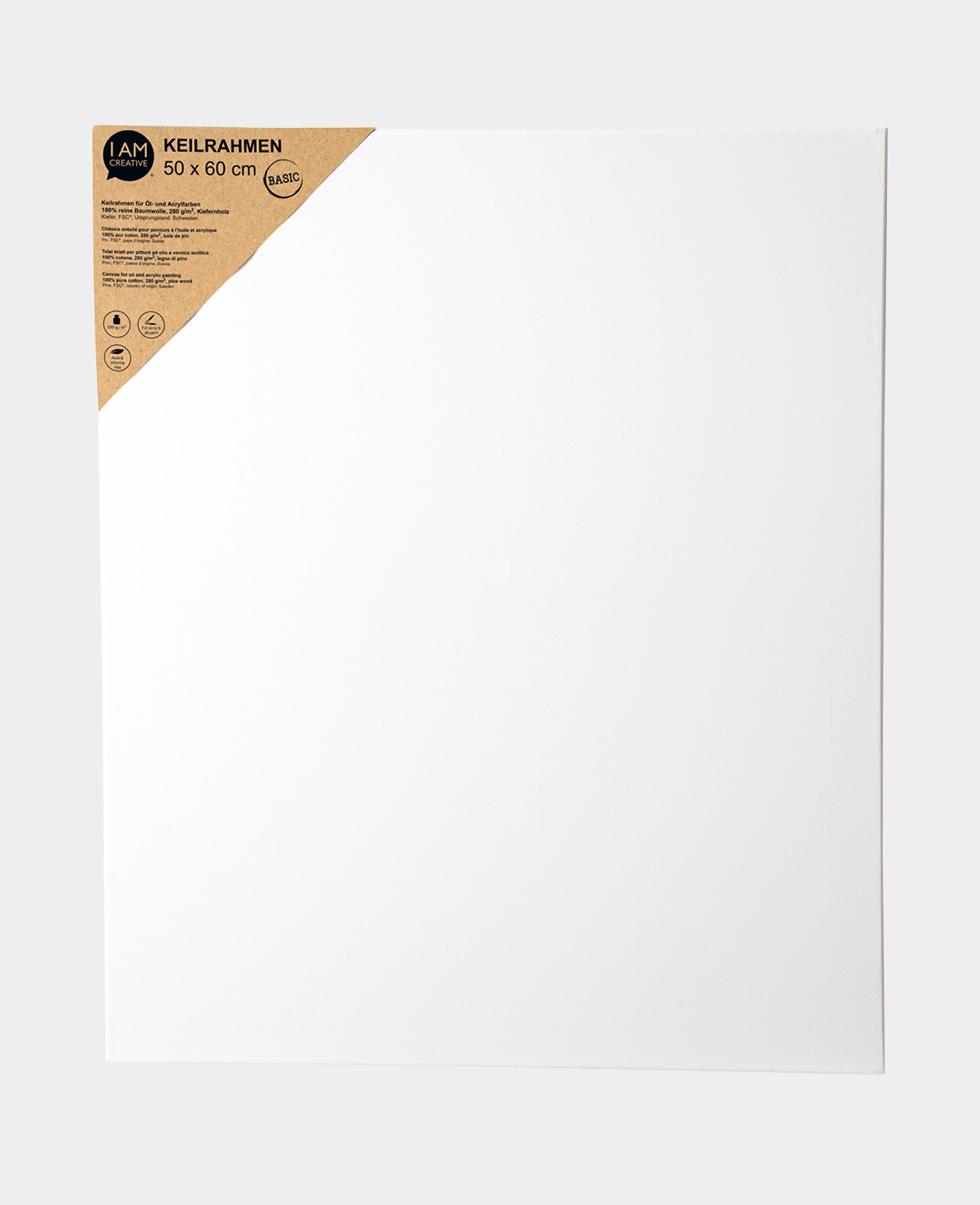 Mit diesem Keilrahmen BASIC von I AM CREATIVE kannst du sofort loslegen. Er ist bereits fertig bespannt und sorgfältig vorbereitet, damit du sofort mit deinen eigenen Kunstwerken beginnen kannst. Die Leinwand aus 100% reiner Baumwolle bietet dir die ideale Oberfläche für verschiedenste Maltechniken, insbesondere für Öl- und Acrylfarben.