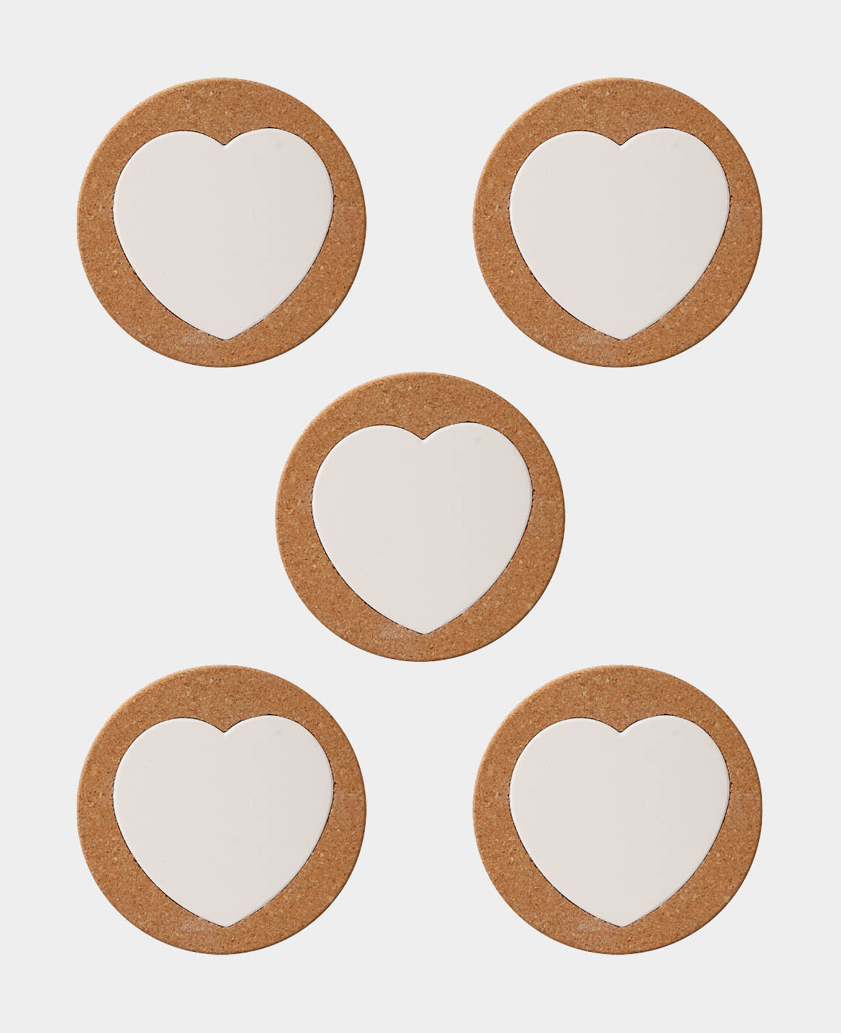 (5er Set Ø15cm Kork Untersetzer Herz Porzellanplatte DIY Deko - Braun / Weiss