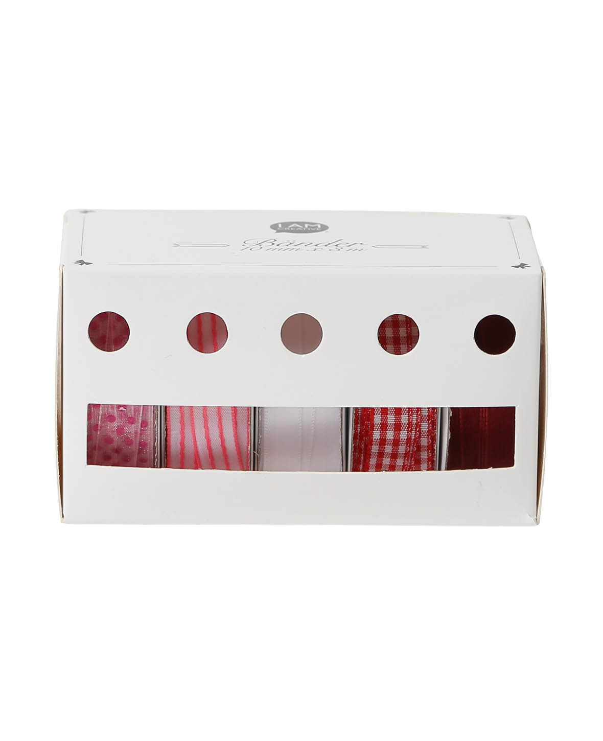 (5er Set) Geschenkband Polyester Deko Band mit Punkte / Karo Muster - Rot / Weiss