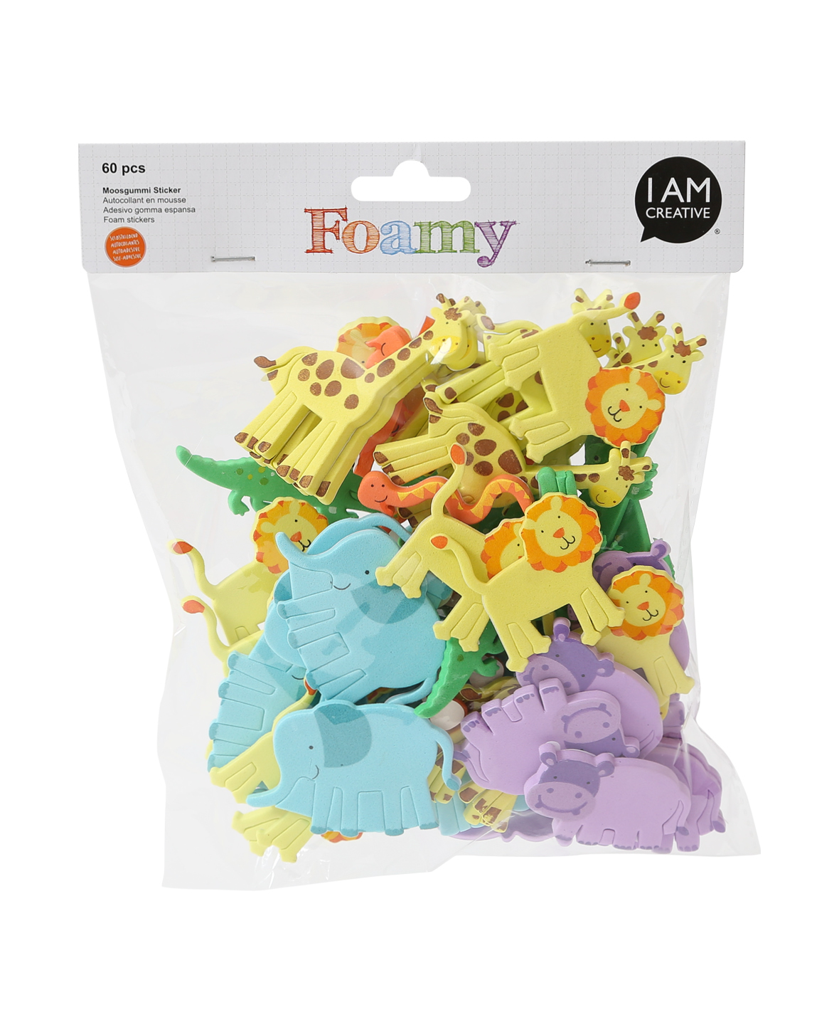 (60er Set) Foamy Moosgummi Sticker DIY Bastel Tier Aufkleber - Zoo Tiere II