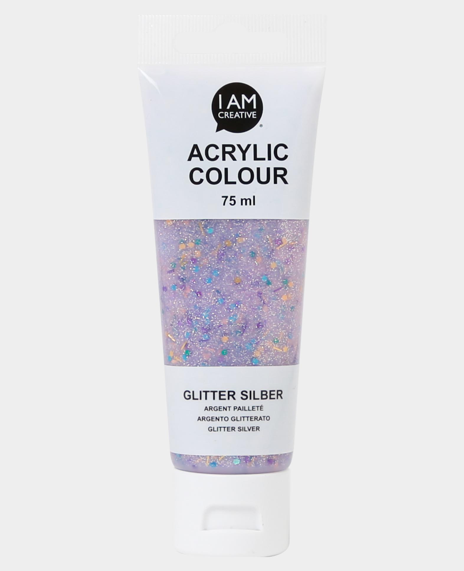 (75ml) Acrylfarbe auf Wasserbasis für Malerei / Kunst DIY - Glitter Silber