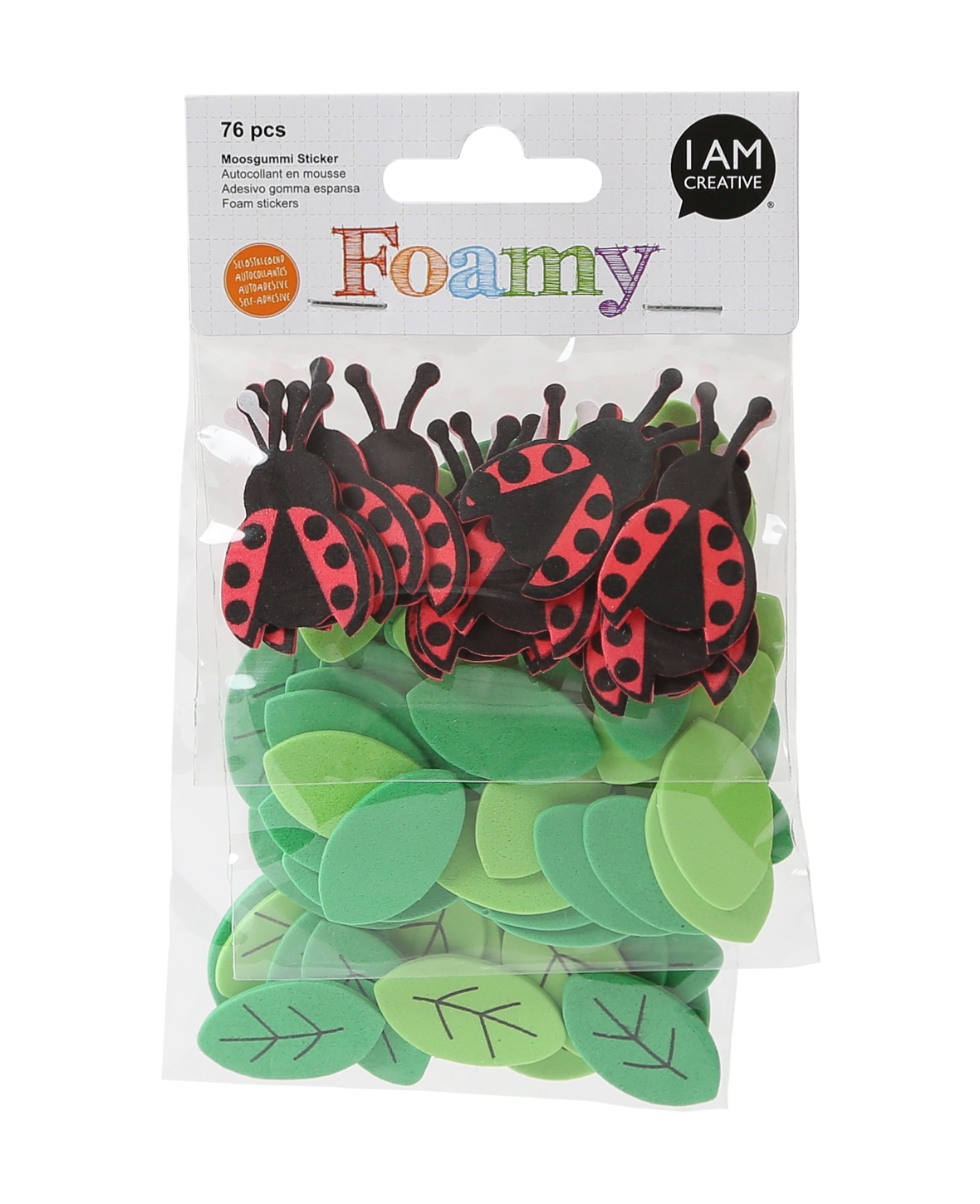 (76er Set) Foamy Moosgummi Sticker DIY Bastel Tier Aufkleber - Marienkäfer / Blätter