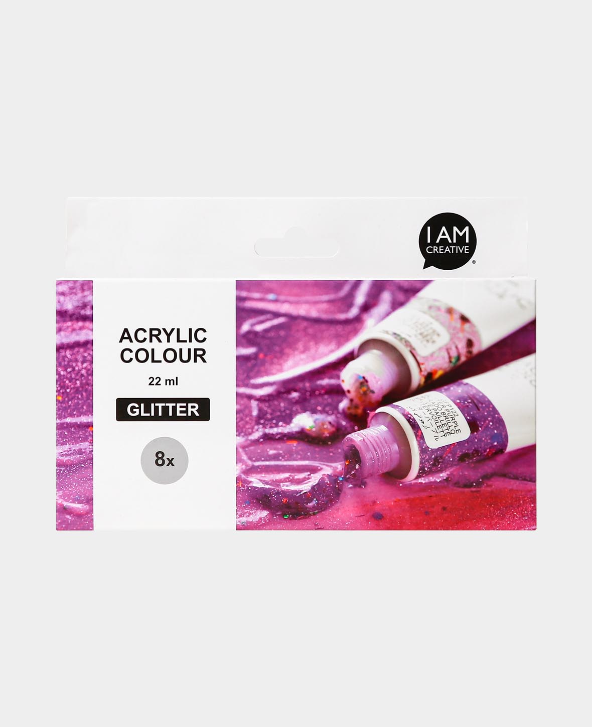 (8er Set) 22ml Basic Acrylfarben Set für Malerei / DIY Kunst - Glitter