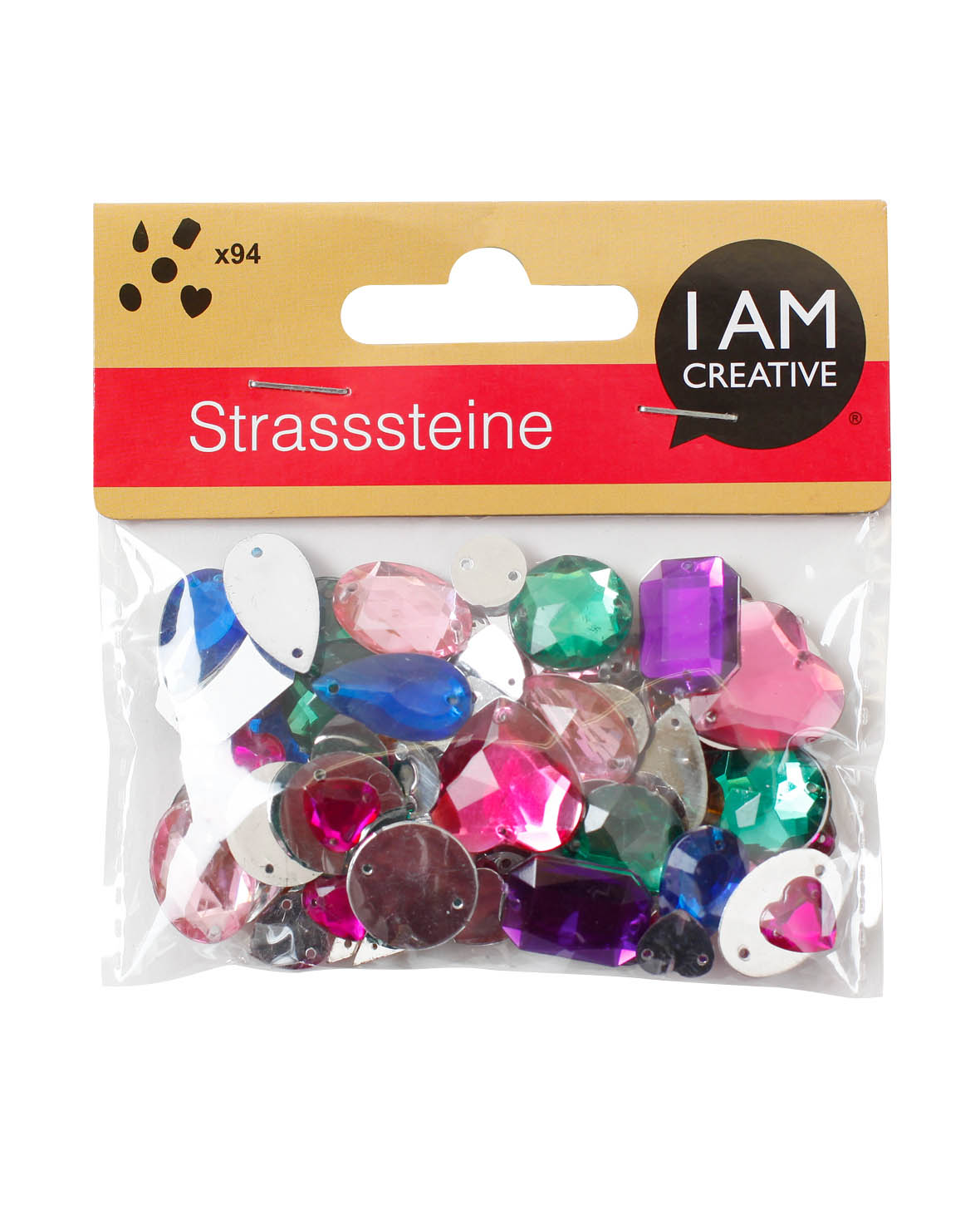 I AM CREATIVE Glas Strasssteine für DIY Textilien in assortiert: