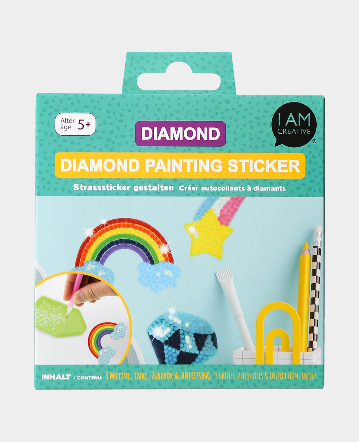 - 3 verschiedene Motive: Diamant, Regenbogen, Stern