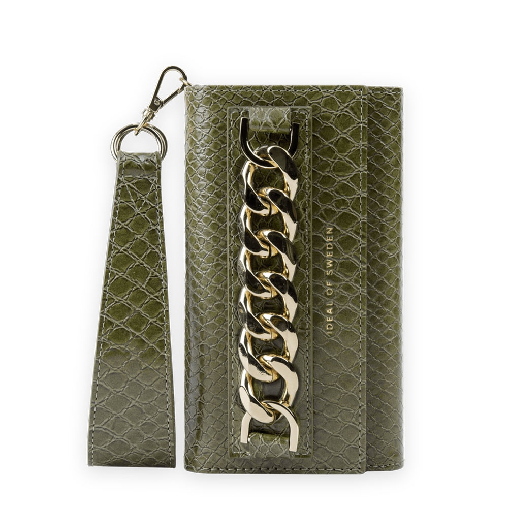 Inspiriert von natürlicher Eleganz und markanter Opulenz, ist Green Snake ein absolutes Statement-Piece das mit absolutem Selbstbewusstsein besticht. Dieses Design verleiht dem Alltag das kleine, gewisse Extra und sorgt für die gewisse Note Luxus, auch unterwegs. An der Vorderseite besitzt die Studio Clutch ein elegantes Kettendetail, mit dem sie sich die Clutch auf vielfältige Art tragen lässt, z. B. in der Hand oder über die zweite Trageschlaufe am Handgelenk. Das Design verfügt über ein glänzendes Schlangen-Finish und kann mit all unseren Taschengurten kombiniert werden.