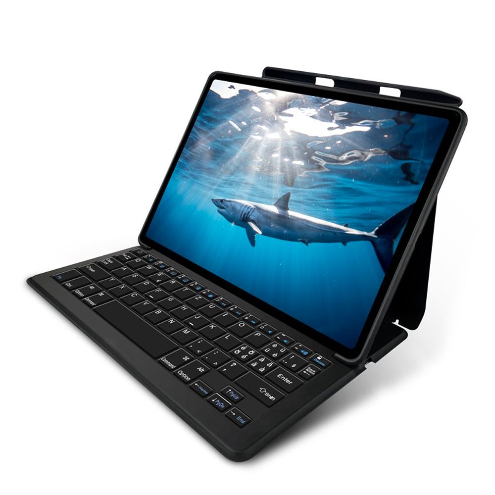 Die Tastatur (CH Layout: QWERTZ) wird ganz einfach über den Micro USB Anschluss aufgeladen. Anschliessend stellst du am Apple iPad Air 10.5" per Bluetooth eine Verbindung zur Tastatur her und schon kannst du in die Tasten hauen. Trotz Case bleiben weiterhin alle notwendigen Anschlüsse verfügbar, sodass du dein Apple iPad Air 10.5" in vollem Umfang nutzen kannst. Die Aufstellfunktion lässt dein Apple iPad Air 10.5" wie eine Art Laptop aussehen, was ein weiteres tolles Feature für angenehmes Arbeiten an diesem Allrounder darstellt. Zusätzlichen Komfort bietet dir die Apple Pencil Halterung. Bestelle noch heute dein neues mobiles Mini Büro im Kleinformat.