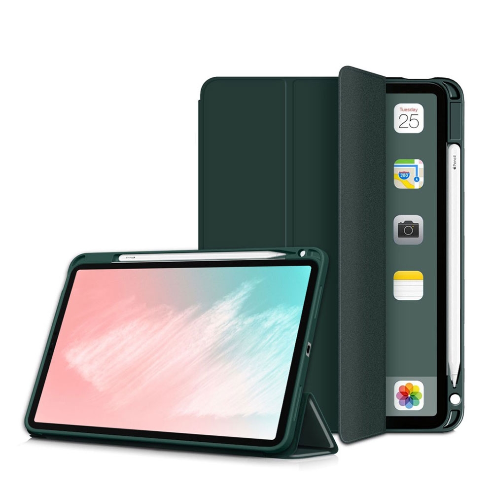 iPad Air 11" (2025/2024) / Air 10.9" (2022/2020) Leder Tasche Smart Cover Schutzhülle + Apple Pencil Halter - Grün