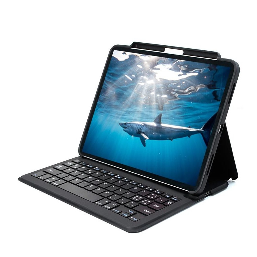(2in1) Mako - iPad Pro 11" (2022/2021/2020/2018) Bluetooth Tastatur CH Layout (QWERTZ) + Leder Tasche inkl. Apple Pencil Halterung (MACA0015) - Schwarz
