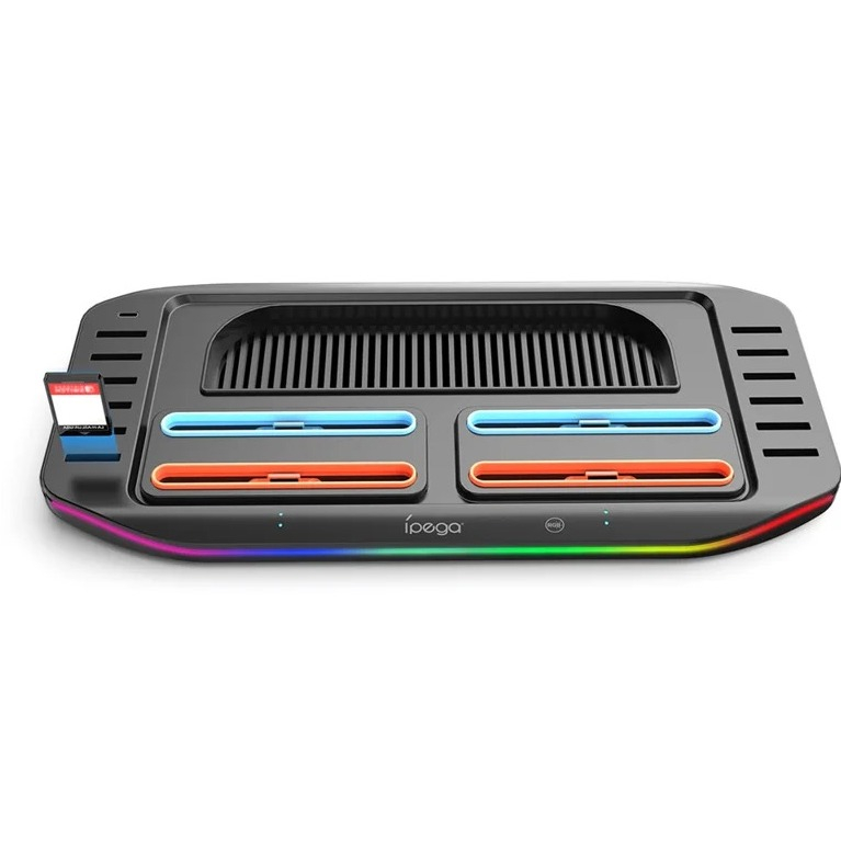 Neben der Ladefunktion bietet die Station zwölf integrierte Spielekarten-Slots, sodass Lieblingsspiele immer griffbereit sind. Kein lästiges Suchen nach einzelnen Cartridges – alles hat seinen festen Platz. Die RGB-Beleuchtung mit neun verschiedenen Farb- und Lichteffekten sorgt zusätzlich für eine coole Gaming-Atmosphäre und lässt sich ganz einfach per Touch-Steuerung anpassen.