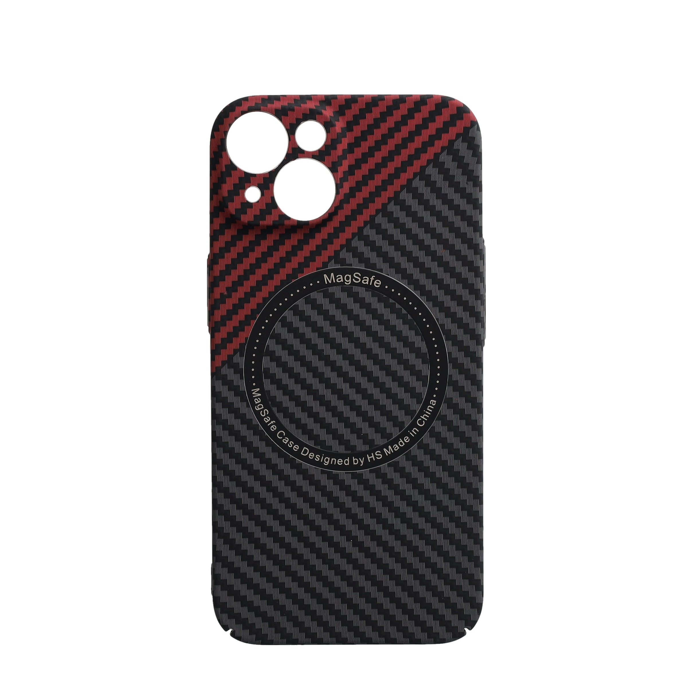 iPhone 14 MagSafe Hardcase Hülle im Carbon Look - Schwarz / Rot