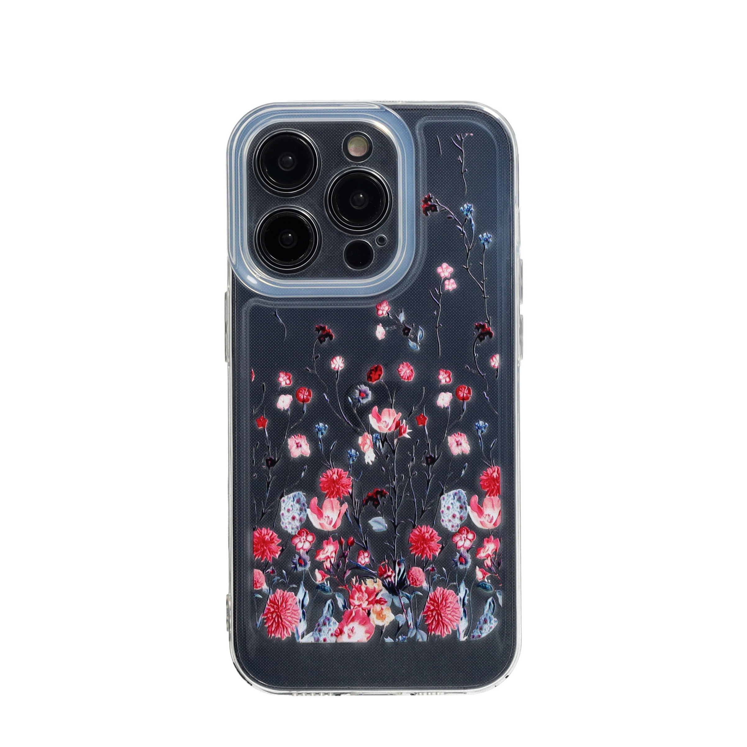 iPhone 14 Pro Gummi Case Schutzhülle mit Kameraschutz - Rosa Blumen