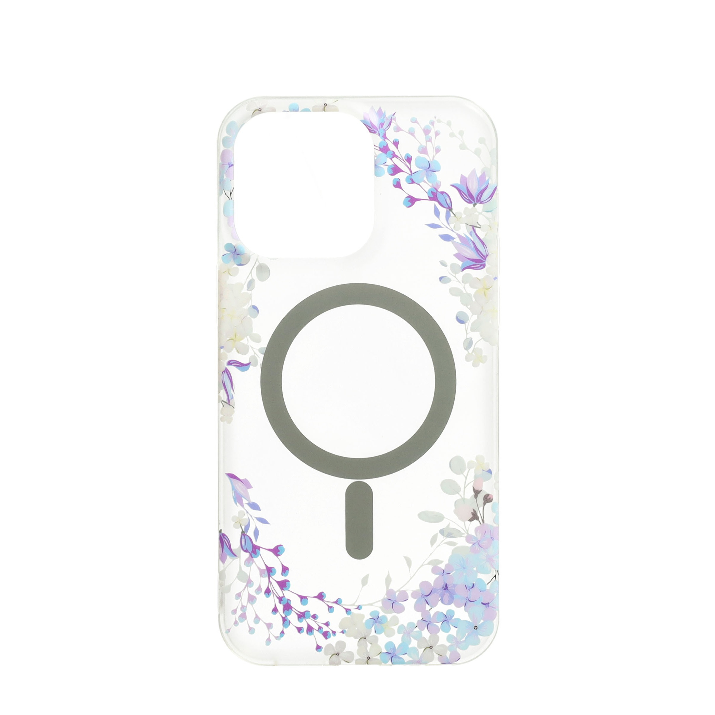 iPhone 14 Pro Max MagSafe Hybrid Hülle TPU Bumper Acryl Rückseite - Lila Blumen