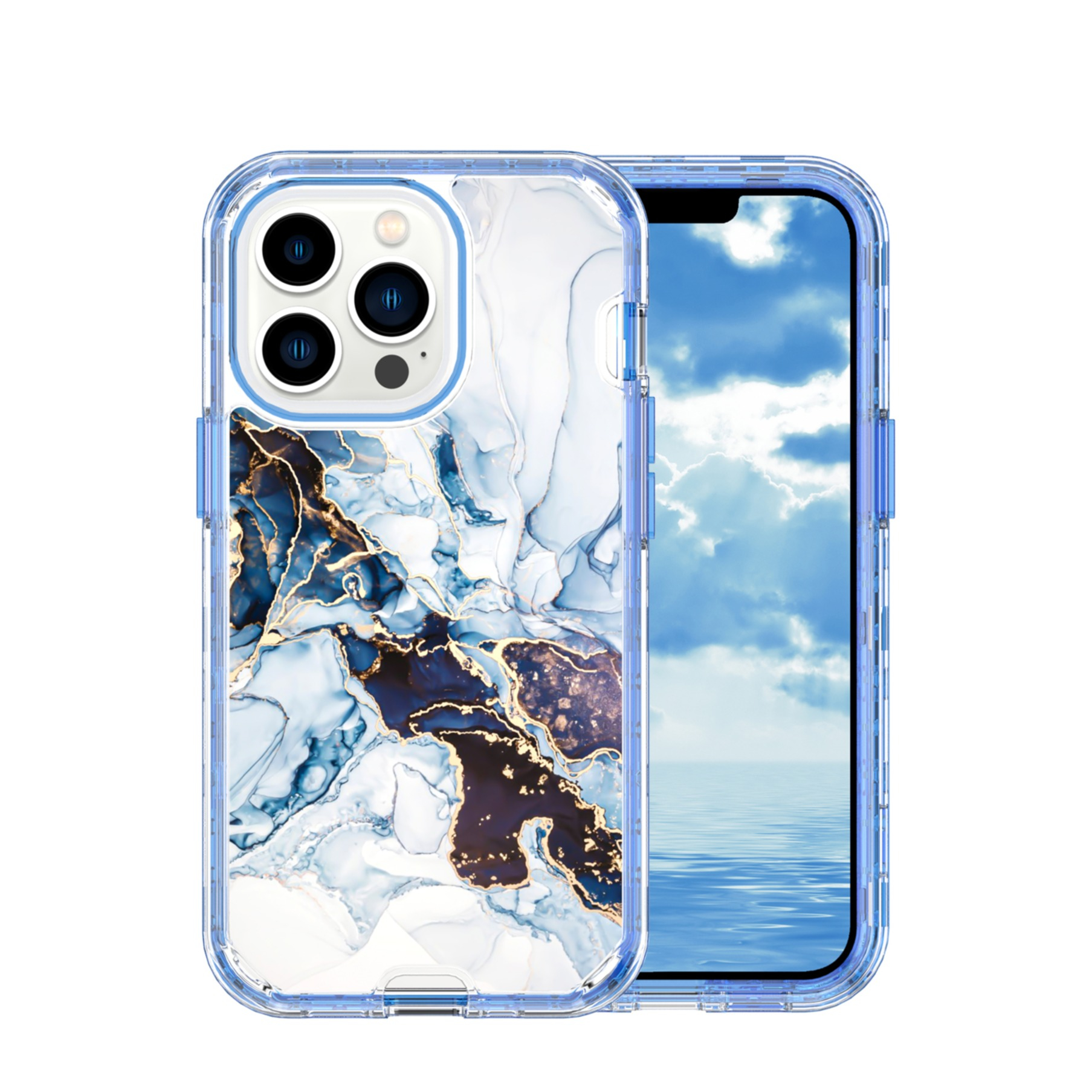 iPhone 15 Pro Max Hybrid Hülle TPU Bumper mit Acryl Rückseite im Marble Marmor Design - Style 3