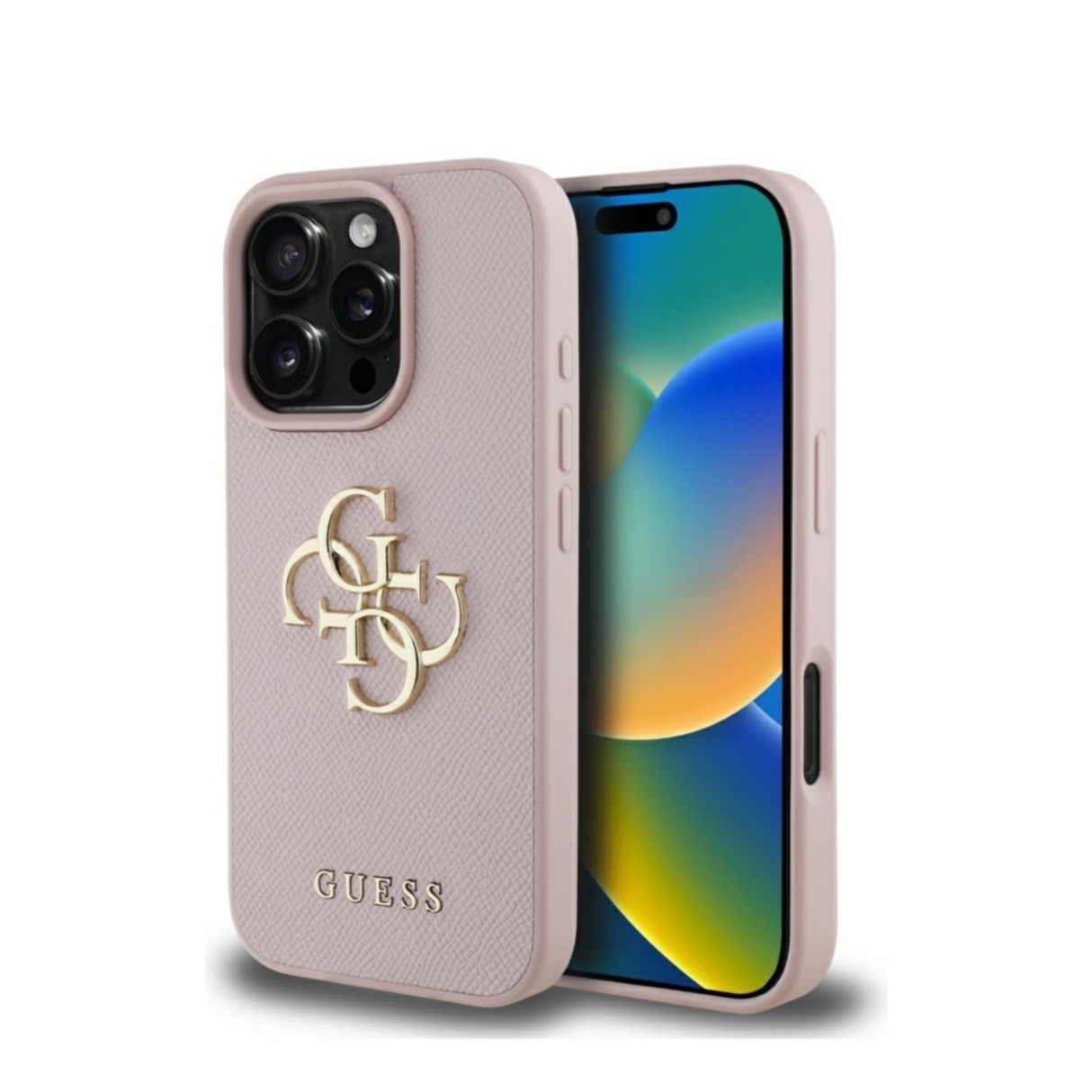 iPhone 16 Pro Leder Hardcase Hülle Grained 4G Big Metal Logo (GUHCP16LPGT4MBP) - Rosa