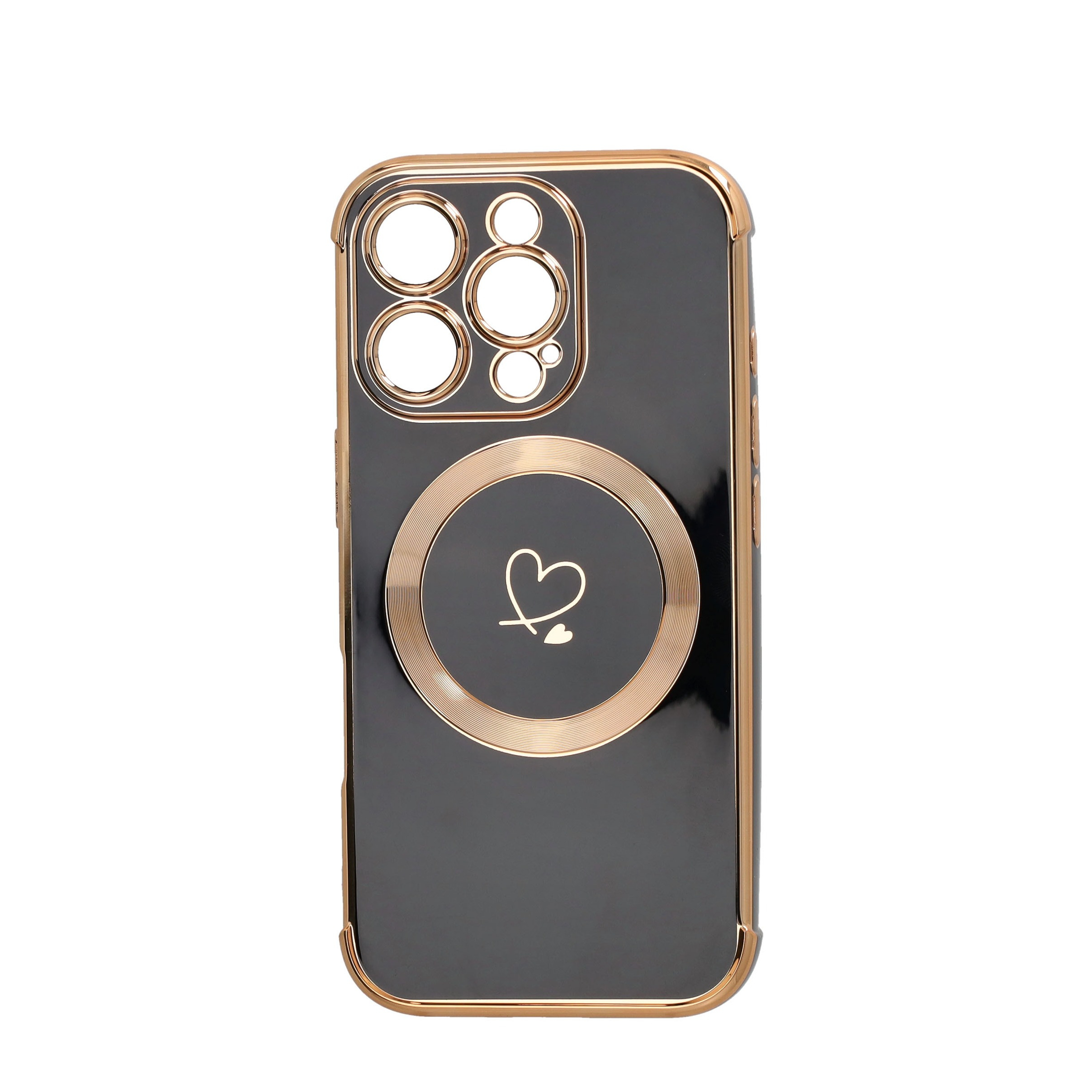 iPhone 16 Pro MagSafe Gummi Case Hülle Galvanisierter Rahmen + Kameraglasschutz - Schwarz / Gold