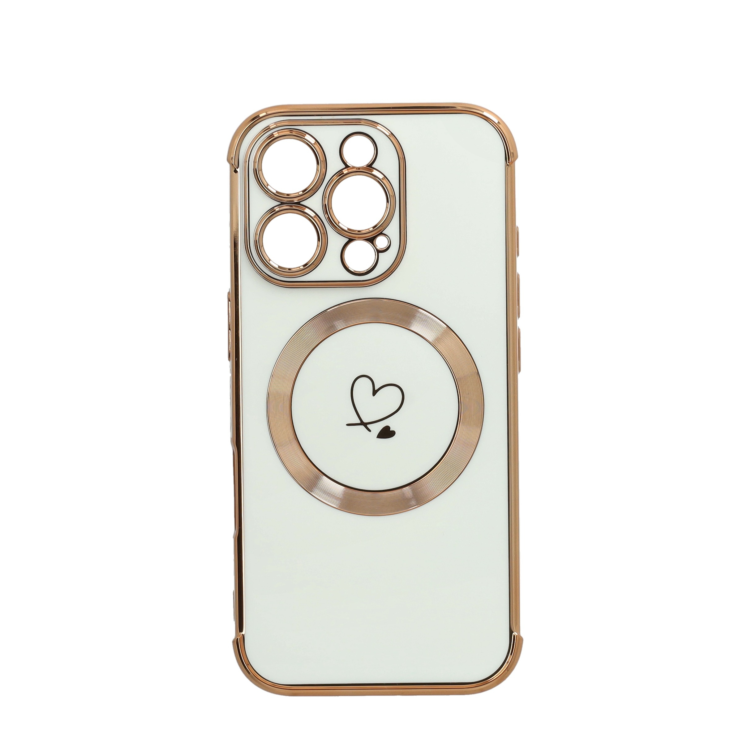 iPhone 16 Pro MagSafe Gummi Case Hülle Galvanisierter Rahmen + Kameraglasschutz - Weiss / Gold