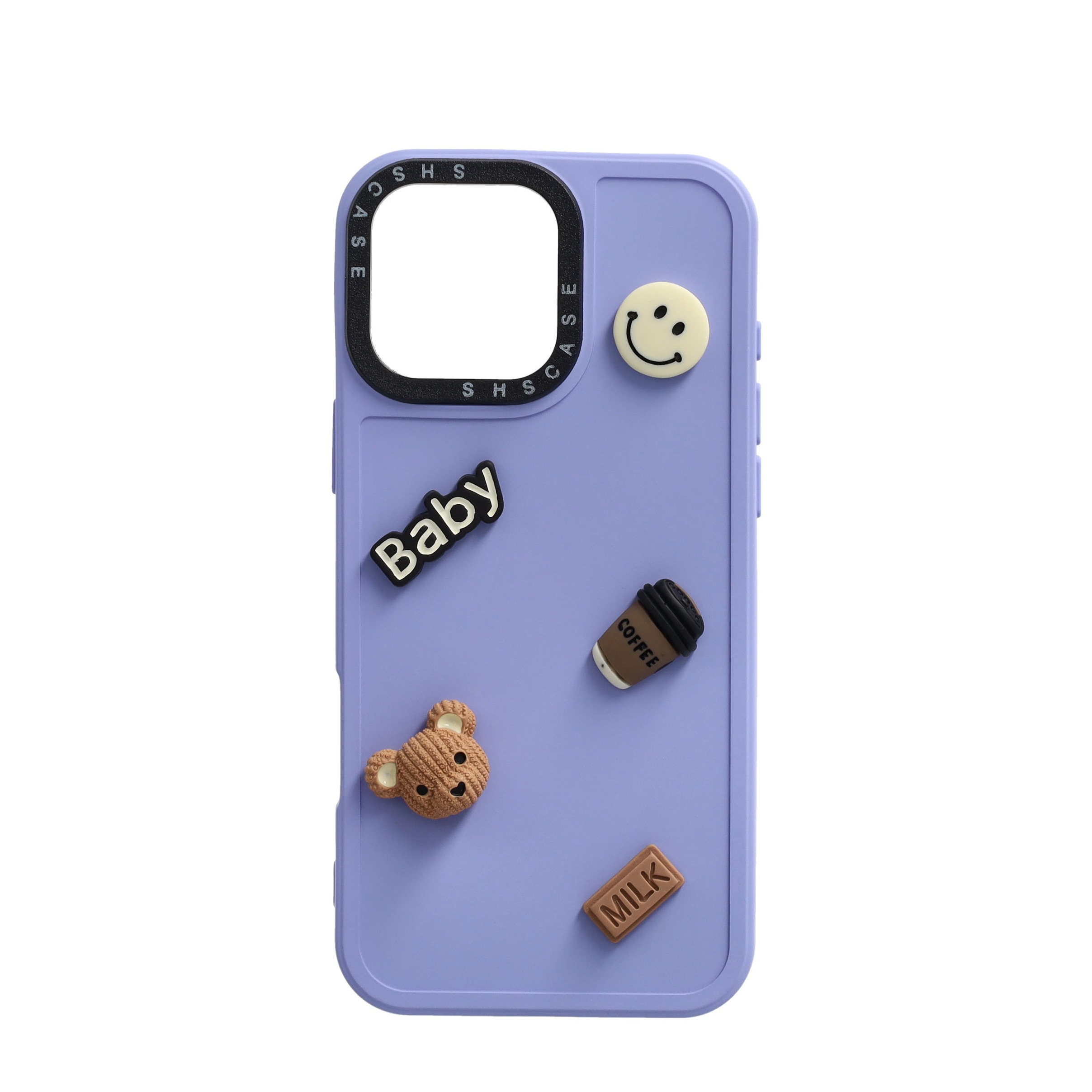 iPhone 16 Pro Max 3D Gummi Case Schutzhülle mit Beweglichen Stickern - Lila
