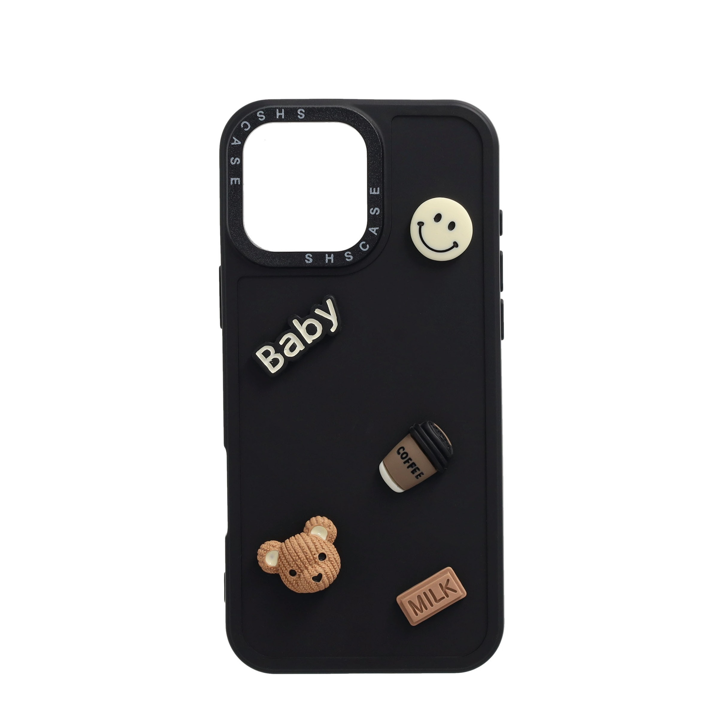 iPhone 16 Pro Max 3D Gummi Case Schutzhülle mit Beweglichen Stickern - Schwarz