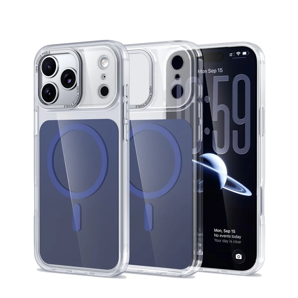 Die Rückseite besteht aus einer robusten Acrylschicht, während eine flexible Gummischicht den Rahmen schützt. Diese Materialkombination sorgt für Stabilität, Stossabsorption und eine langlebige Nutzung im Alltag. Die starken Magnete gewährleisten eine zuverlässige Kompatibilität mit MagSafe-Zubehör. Magnetische Ladegeräte und weiteres Zubehör lassen sich einfach befestigen, ohne dass die Hülle entfernt werden muss.