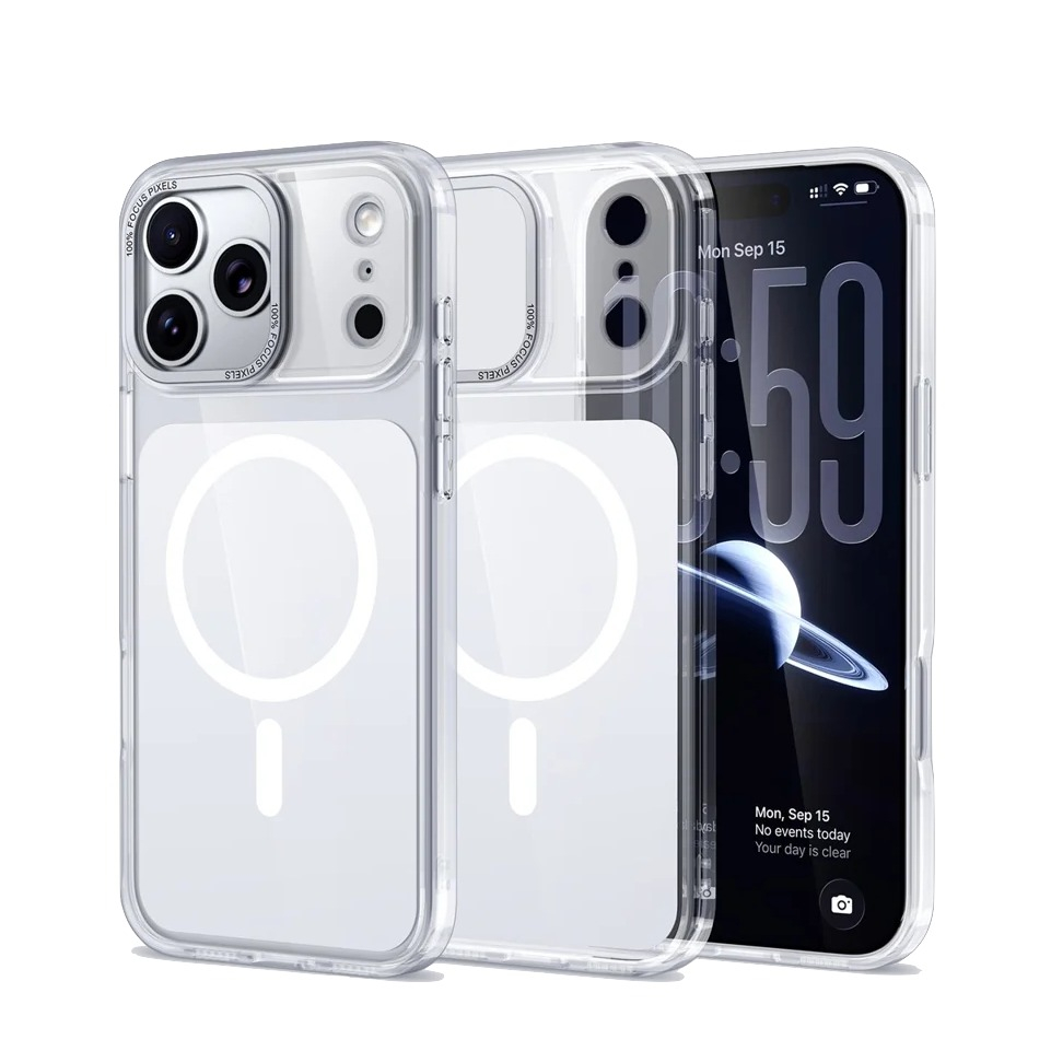 Die Rückseite besteht aus einer robusten Acrylschicht, während eine flexible Gummischicht den Rahmen schützt. Diese Materialkombination sorgt für Stabilität, Stossabsorption und eine langlebige Nutzung im Alltag. Die starken Magnete gewährleisten eine zuverlässige Kompatibilität mit MagSafe-Zubehör. Magnetische Ladegeräte und weiteres Zubehör lassen sich einfach befestigen, ohne dass die Hülle entfernt werden muss.