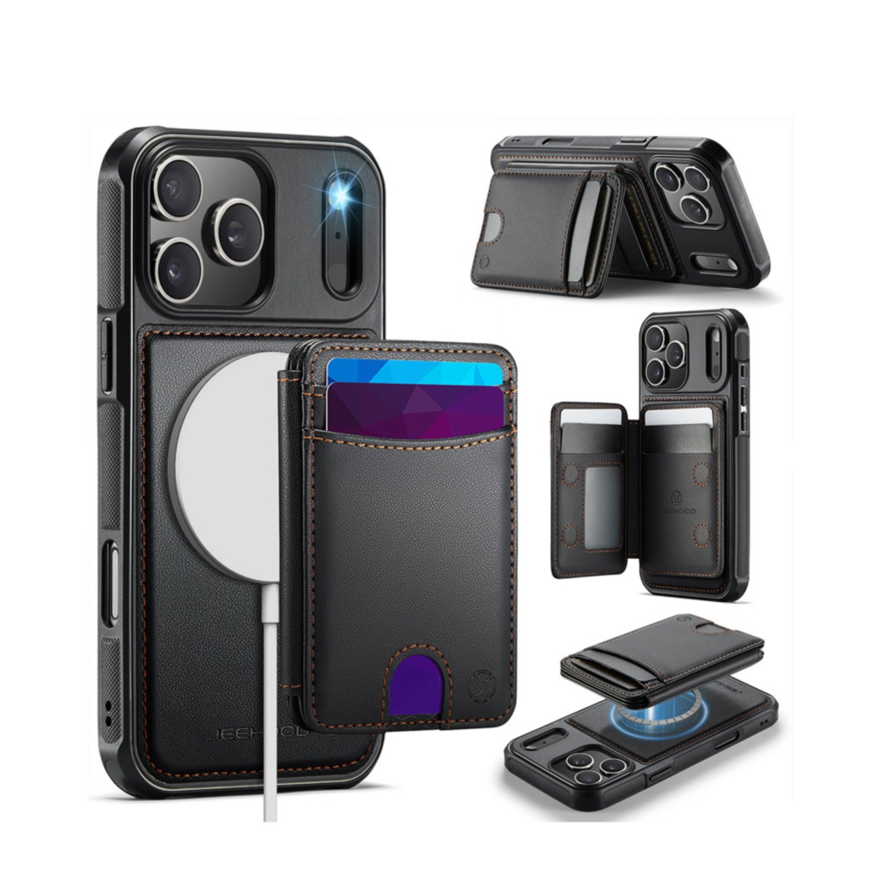 iPhone 17 Pro Max MagSafe Kunstleder Hülle mit Abnehmbarem Kartenfach (RFID Schutz) - Schwarz
