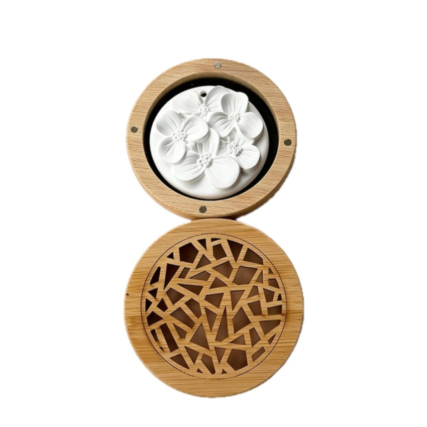(3-tlg. Set) Keramik Duftstein Aroma Öl Diffuser Home Deko inkl. Holz Dose - Duftblüte