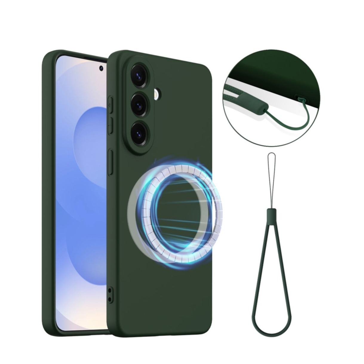 Samsung Galaxy A57 Silikon Case Hülle + Trageschlaufe MagSafe-Modul - Dunkelgrün