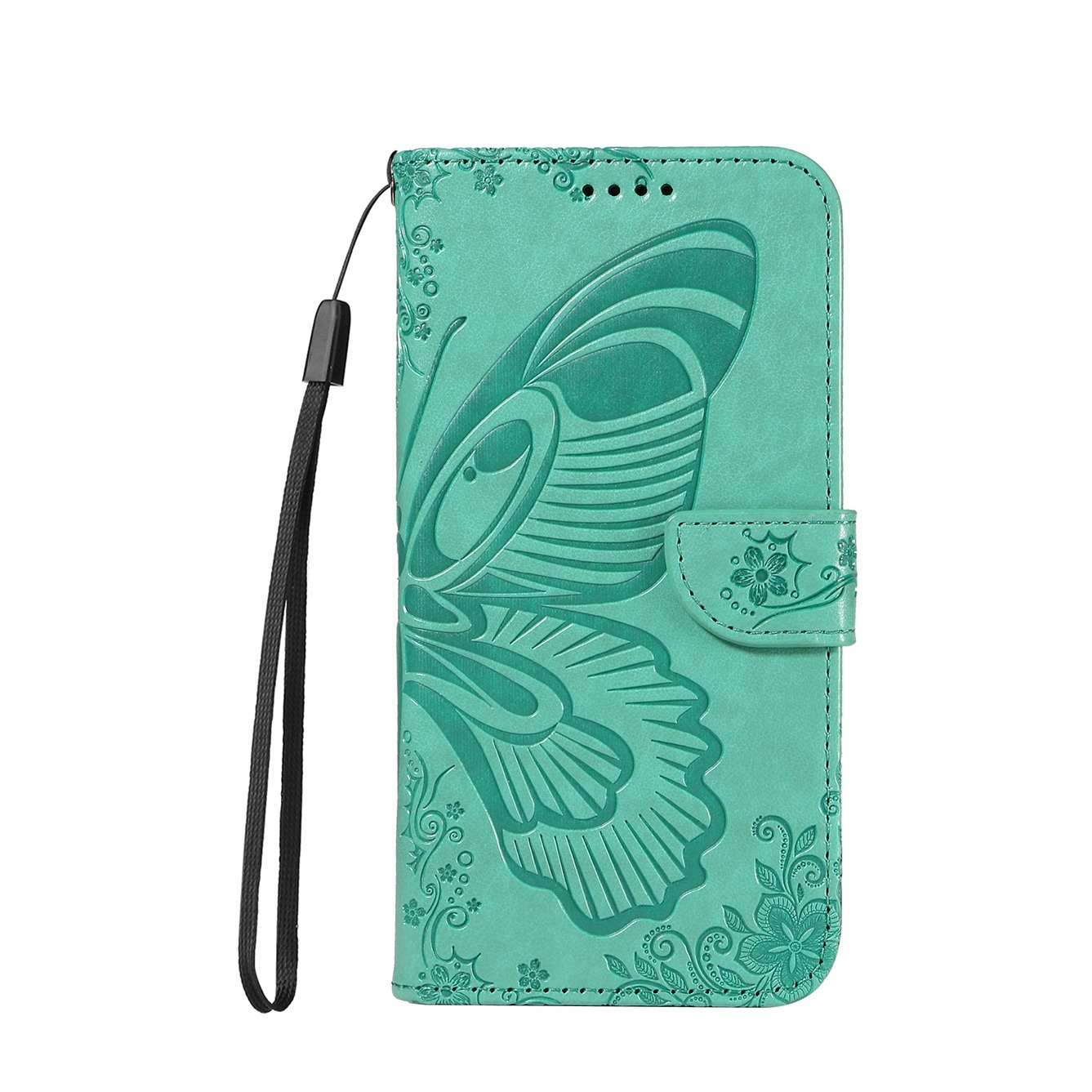 iPhone Air Leder Tasche Flip Cover Schmetterlinge Imprint - Türkis