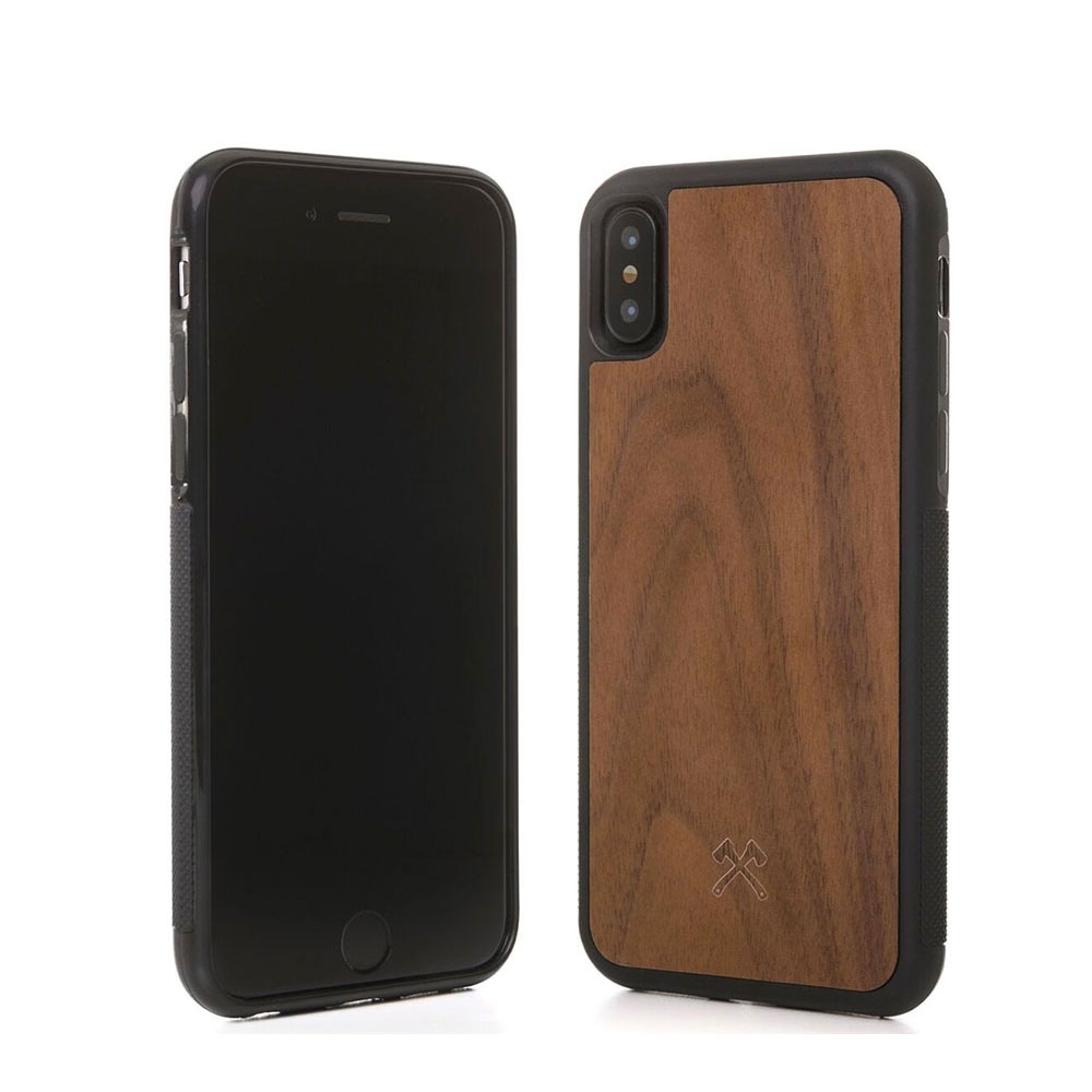 - Stosssichere Schutzhülle aus zertifiziertem Walnuss-Holz und Silikon für das iPhone Xs / X