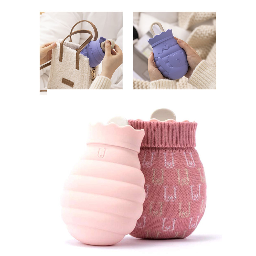 (313ml) 14x11cm Wärmeflasche Handwärmer mit Stoff Bezug - Rosa