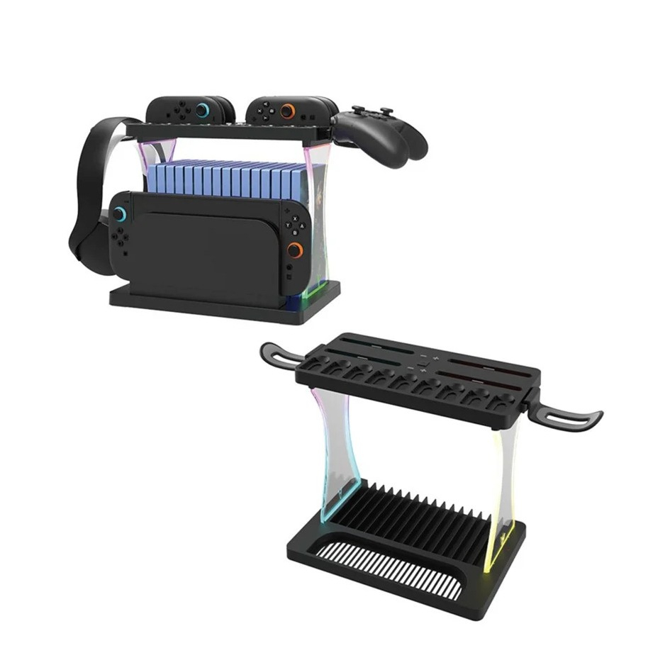 Joy-Con Ladestation mit RGB Ablagehalterung für Nintendo Switch 2 / Pro Controller / Switch-Games und Headset Kopfhörer - Schwarz