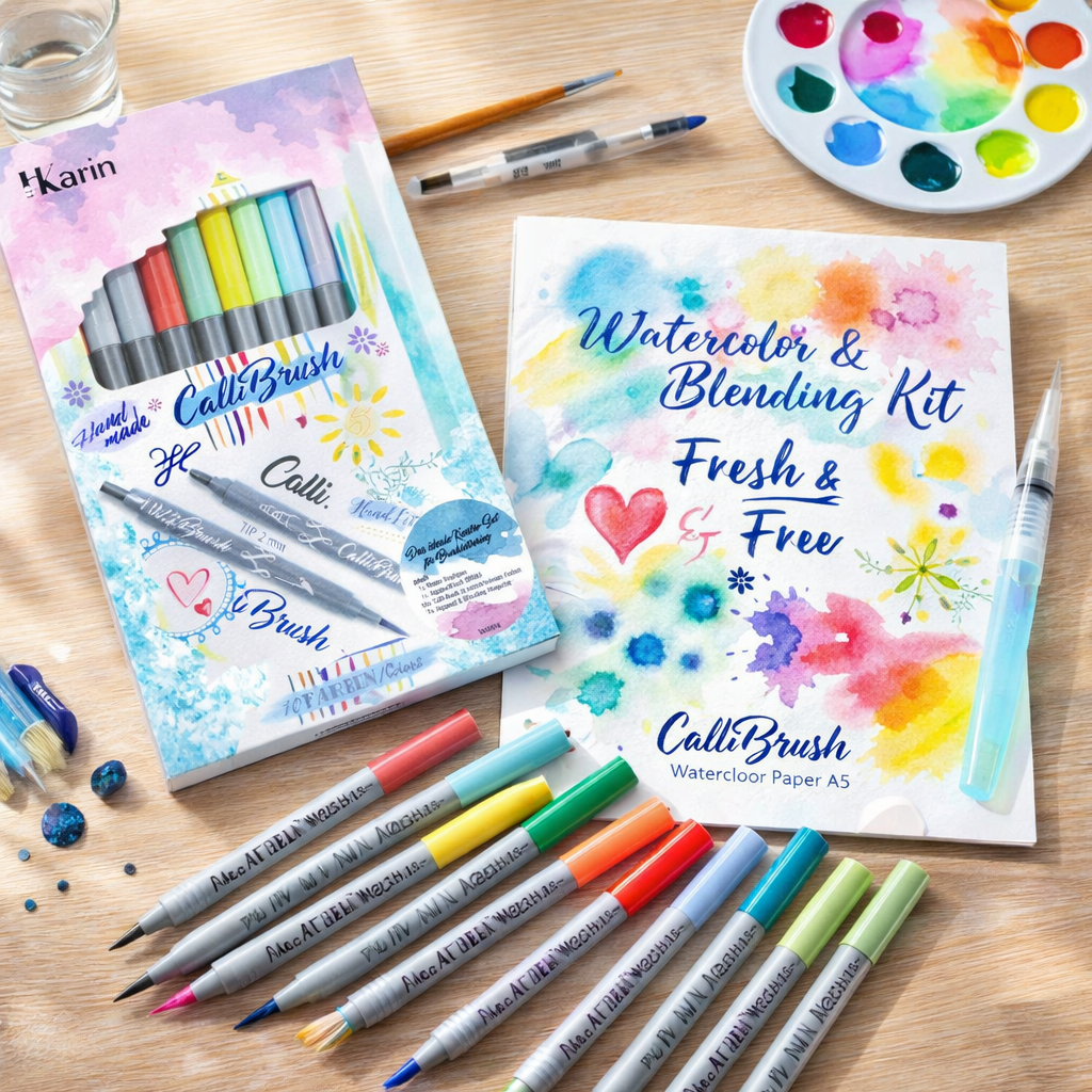 (13-tlg. Set) Aquarell & Blending Kit Callibrush Doppelspitz Mal Stifte inkl. Aquarell Block DIN A5 + Waterbrush Pen (18050)